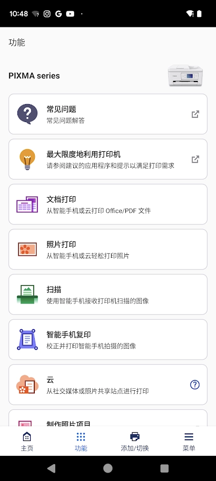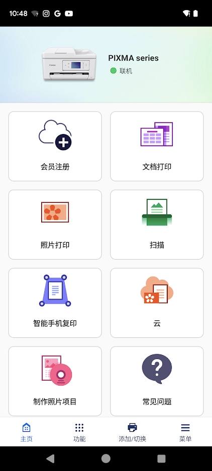 旧名称: Canon PRINT Inkjet/SELPHY。<br/>Canon PRINT 是一款为 Canon 打印机设计的应用程序。<br/>通过此应用程序,可以设置打印机并开始打印和扫描。该应用程序还提供多种便捷功能,例如检查耗材剩余量、使用云打印等。<br/><br/>建议搭配 Canon PRINT 来使用 Canon 打印机。<br/><br/>部分功能和服务可能不适用于某些打印机、国家或地区及环境。<br/><br/>[支持的打印机]<br/><br/>- 喷墨打印机<br/>PIXMA TS series、TR series、MG series、MX series、G series、E series、PRO series、MP series、iP series、iX series<br/>MAXIFY MB series、iB series、GX series<br/>imagePROGRAF PRO、TM、TA、TX、TZ、GP、TC series<br/>*部分型号除外<br/><br/>- 激光打印机<br/>imageFORCE series, imagePRESS series,<br/>imageRUNNER ADVANCE series, Color imageRUNNER series, imageRUNNER series, <br/>Satera series, imageCLASS series, imageCLASS X series, i-SENSYS series, i-SENSYS X series<br/><br/>- 小型照片打印机<br/>SELPHY CP900 series、CP910、CP1200、CP1300、CP1500<br/>*CP900 不支持在 Ad Hoc 模式下打印。请使用架构模式。