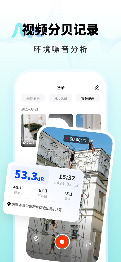 【噪音检测仪 - AI噪声分贝检测】 一款专业的AI噪音分贝检测工具,功能丰富、专业、实用,操作简单,适用于工业、环保、社区、车内环境、工作场所、学习环境、居家生活等多种场景。 【AI 智能分析】 实时处理噪音数据,不仅能算出平均值、峰值等基础参数,还能深度剖析频率分布与变化趋势,并且能给出噪音防治建议。比如在工厂,可通过频率分析预判设备故障;在社区,依据趋势为噪音治理提供方向,检测环境噪音是否达标。 【专业拍摄取证】 可以对噪音环境进行拍摄取证,实时记录噪音位置和噪音数值,为噪音纠纷、执法等提供有力证据。 ———————————————————————————— 使用以上功能,您需要订阅购买 订阅:当你确认购买后以及每个续订期开始时, 订阅款项将从你的iTunes账户中扣除。 续订:苹果iTunes账户会在到期前24小时内扣费,扣费成功后会顺延一个订阅周期。 取消续订:您可通过前往 iTunes 帐户设置并取消订阅,此操作必须在试用期或任何订阅期结束前 24 小时完成,否则将自动续订。包含试用期的订阅将自动续订为付费订阅。 订阅可以由用户管理,自动续订可以在购买后转到用户的账户设置中去关闭 当您在试用期内购买高级订阅时,试用期中任何未使用的部分(如提供)将失效。 ———————————————————————————————— 关于应用条款 《用户使用协议》https://docs.qq.com/doc/DZkpWWkRkeFNKRVdH 《隐私政策》https://docs.qq.com/doc/DZnZJY1p6WVZZR2xo