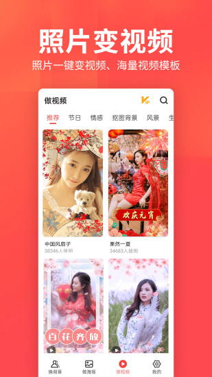 一键抠图换背景、特效照片变视频 相册集,集换背景、照片特效、相框模板、精美壁纸、视频制作功能于一体,一键P图换背景、照片变视频,是简单易用的图片编辑、视频制作、美颜相机、P图拼图工具 产品特点: 1. 秒换背景 —— 一键自动抠图、照片合成换背景 人工智能、AI算法、自动识别、自动抠图,可以添加多张人像图,复制、随意调整人像位置、大小,更提供数百种名胜古迹、森林、香车宝马、花园、异域风情背景模板,一键合成好玩理想的不同背景照片;并支持动态背景、各色表情包,让你的照片逗趣萌动起来 2. 模板海报 —— 精美海报、节日祝福 海量精美海报模板,让你的祝福及时有趣;节日祝福、家人随拍、美食艺术,应有尽有 3. 视频制作 —— 照片一键变视频、海量视频模板 一键制作照片视频,让照片动起来;海量视频模板、视频滤镜、背景音乐,免去找素材的烦恼,让你的视频制作如此简单 4. 精美壁纸 —— 高清上新,美轮美奂 优美壁纸,手机不在单调;每日上新,心情美美哒 5. 照片编辑 —— 照片拼图、一键美图、美颜相机 强大的照片编辑、拼图功能,实现对照片的各种编辑、一键美图;美颜相机、美颜自拍;滤镜特效,随手拈来 6. 相册整理 —— 智能清理、图片专清 智能清理相册,删除不需要的照片、相似图片处理、垃圾图片、缓存图片清理,让你的相册轻装上阵