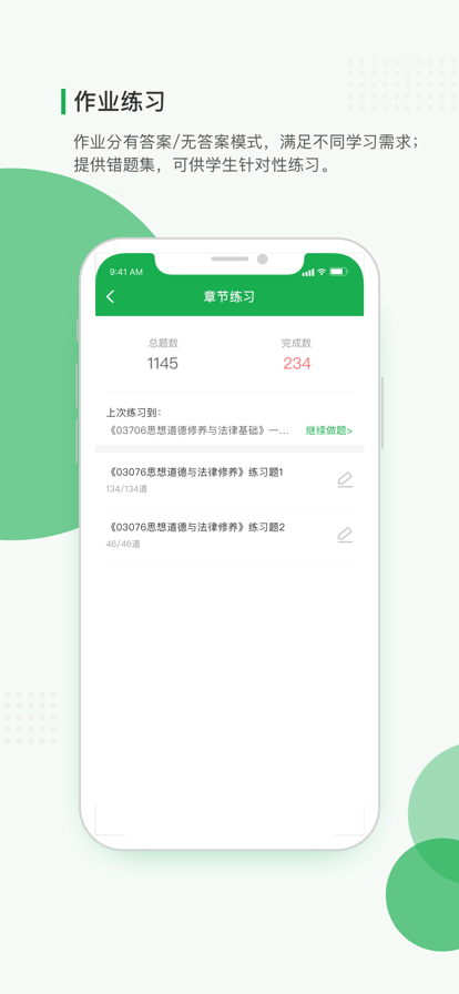 【作业】学生可以查看老师下发的作业,并可以查看作业中的学习资源, 作答试卷和讨论活动,查看作业批改结果 【错题本】自动收录学生在学习过程中的错题,学生可根据自己的需求进行查看并管理错题,也可以进行错题重做,巩固知识点 【消息】学生可以接收老师发布的班级公告 【个人中心】管理学生个人的账号以及基本信息,查看所属班级和小组