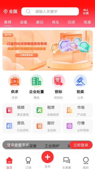 【产品介绍】 “网优二手网”是网优科技旗下的APP,通过大数据以及智能技术等手段,提供二手设备、再生资源、废旧物资、旧货、危废、固废等行业信息,深度服务垂直行业,有效解决行业需求,服务国内循环经济建设。 【信息类型】 供求:全国各大中小型企业、个人、个体户的回收出售信息。 网优处置:网优独家一手的大型企业采购处置信息。 资产处置:网优精选优质的各大中小型企业采购处置信息。 招拍挂:全国大、中型企业处置闲置设备、废旧物资、库存物资、整厂转让等招投标信息。 行情分析:每日更新行情分析及报价,包括废钢、废有色金属(铜、铝、铅、锌、锡)、废稀贵金属、废不锈钢、废纸、废塑料、危废等。 【产品特点】 信息全面:日均更新信息量1万+,包括废旧货源、工厂采购、招投标公告、企业资产处置等。 企业数量多:注册企业500万+,包含企业采购供应商、货场贸易商、二手中间商、全国回收商、废料加工商等。 行情报价:每日更新金属、塑料等废旧类报价,随时随地免费查阅,掌握行情快人一步。 发布信息:免费发布需求信息、客户自动找上门。 小视频:免费发布小视频,提升知名度、吸引目标客户关注。 社区交流:二手设备、废旧物资、再生资源从业者聚集地,以商会友,真实互动,更快更准找到商机。 【涵盖行业】 二手设备:工程机械、机床设备、工业锅炉、化工设备、纺织设备、木工机械、服装设备、冶金设备、矿山机械、印刷机、造纸机、发电机、旧变压器、农业机械、塑料设备、建材设备、包装设备、仪器仪表、食品机械、行车等工业类闲置设备行业。 再生资源:废金属、废有色金属、废塑料、废橡胶、废纸、废钢、废铜、废铝、废不锈钢、废玻璃、废木头等。 废旧物资:废铁、废电缆、可利用材料、破产倒闭企业、拆除拆解、旧厂房、报废汽车船舶等。 旧货:家电、数码产品、办公设备、办公耗材、厨卫用品、五金工具、宾馆酒店用品等 危废:废油、废化工原料、电池电瓶等。 二手车:二手乘用车、二手非机动车、旧工程车等。 各种库存积压物资等。 【联系我们】 对于产品有任何疑问或建议,请及时与我们联系。客服热线:400 622 1112。
