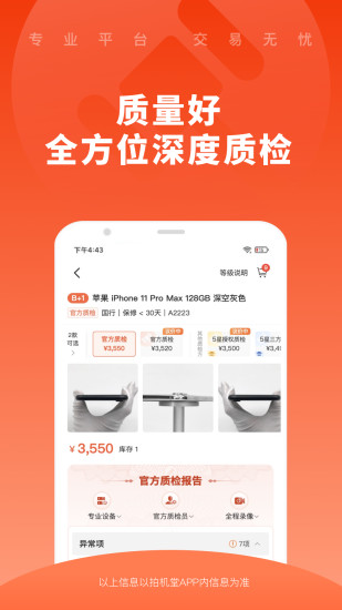 拍机堂是世界银行和京东战略投资的万物新生集团旗下二手手机数码交易平台,买卖二手,就上拍机堂! →在拍机堂,二手手机、二手平板、二手笔记本等二手数码产品,品类非常齐全,我们努力让买卖二手这件事变得更省心更放心; →在拍机堂,没有中间环节,从买家直接到卖家,价格优,许多人都获得了更舒心的体验; →在拍机堂,服务更优质,买卖流程由系统判断,问题机器可以退货,专人售后也更放心; →在拍机堂,有专业的质检团队,品质有保证,二手数码可安心买卖,海量二手ZAO起来! ====== 怎么联系我们? 如果你手上有闲置的机器,可以关注公众号:【拍机堂卖家服务】,轻松获得收入,赶紧卖起来; 如果你想买二手手机、二手平板、二手笔记本等二手3C产品,可以关注公众号:【拍机堂买家服务】,做个酷酷的剁手党! 有什么意见和建议,都可以跟我们说哦~