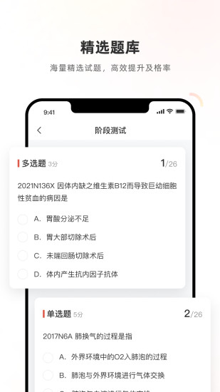 《医学教育网App》集学习、资讯、交流为一体,涵盖免费题库,免费视频,讲师直播,医学社区,考试动态等功能,专为医学人打造的移动学习交流平台。 【网校讲师】百余位讲师携手执教,多个三甲医院主任医师团队和医学教育领域从业多年的优质讲师! 【医学题库】十数年教学经验积累,精准免费题库,直击考点,让您每次做题不在浪费时间! 【直播课程】讲师互动,课堂交流,与老师全方位交互,现场教学般的在线课程体验! 网校涵盖多个类别的优质医学考试辅导课程: 执业药师、医师资格(临床执业/助理医师、中医执业/助理医师、中西医执业/助理医师、口腔执业/助理医师、公卫执业/助理医师、乡村全科助理等)、医师分阶段、住院医师、护士执业、卫生资格(内/外/妇产/儿/全科主治医师、护师、主管护师、药士/师/主管、中药士/师/主管、检验士/师/主管)、医疗卫生招聘等多种辅导相关课程。 上医学教育网,做成功医学人。 【联系我们】 官方网站:www.med66.com 网校24小时客服热线:4006501888/010-82311666 微信公众号:med66_cdel 医学教育网 微博:医学教育网