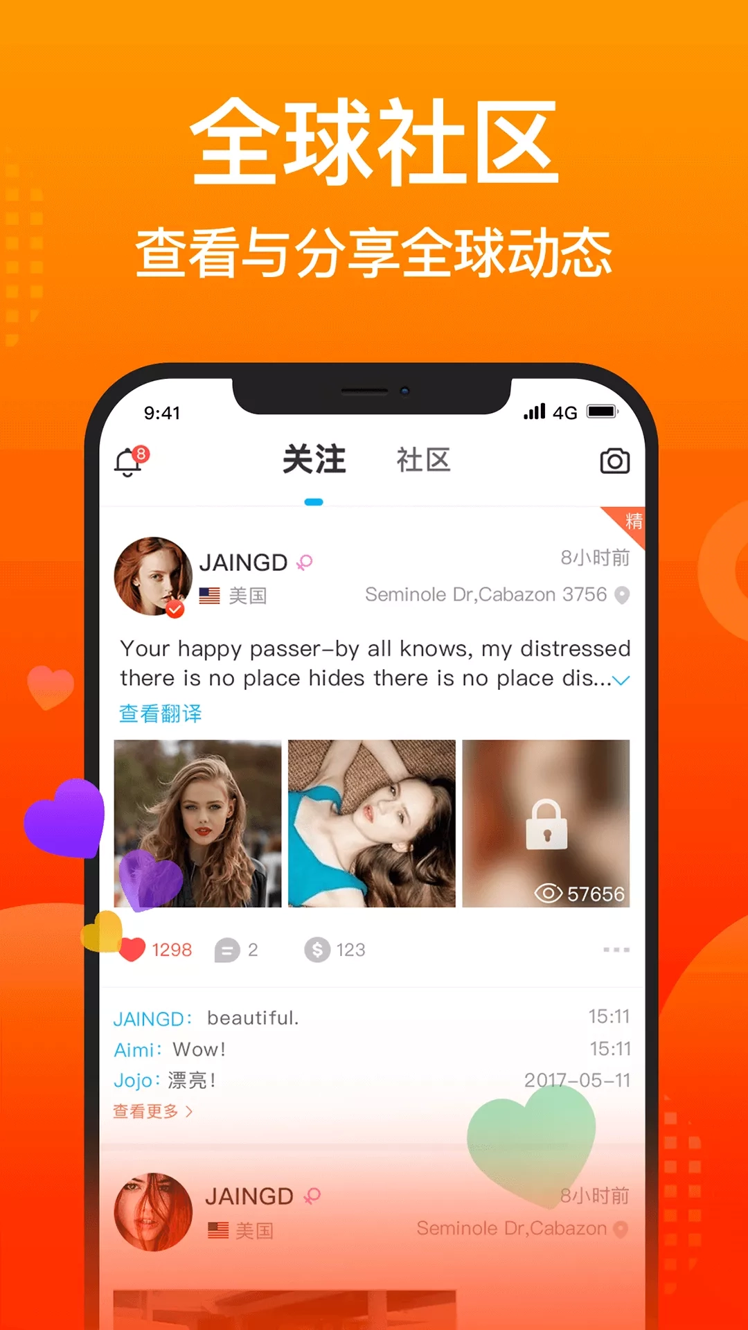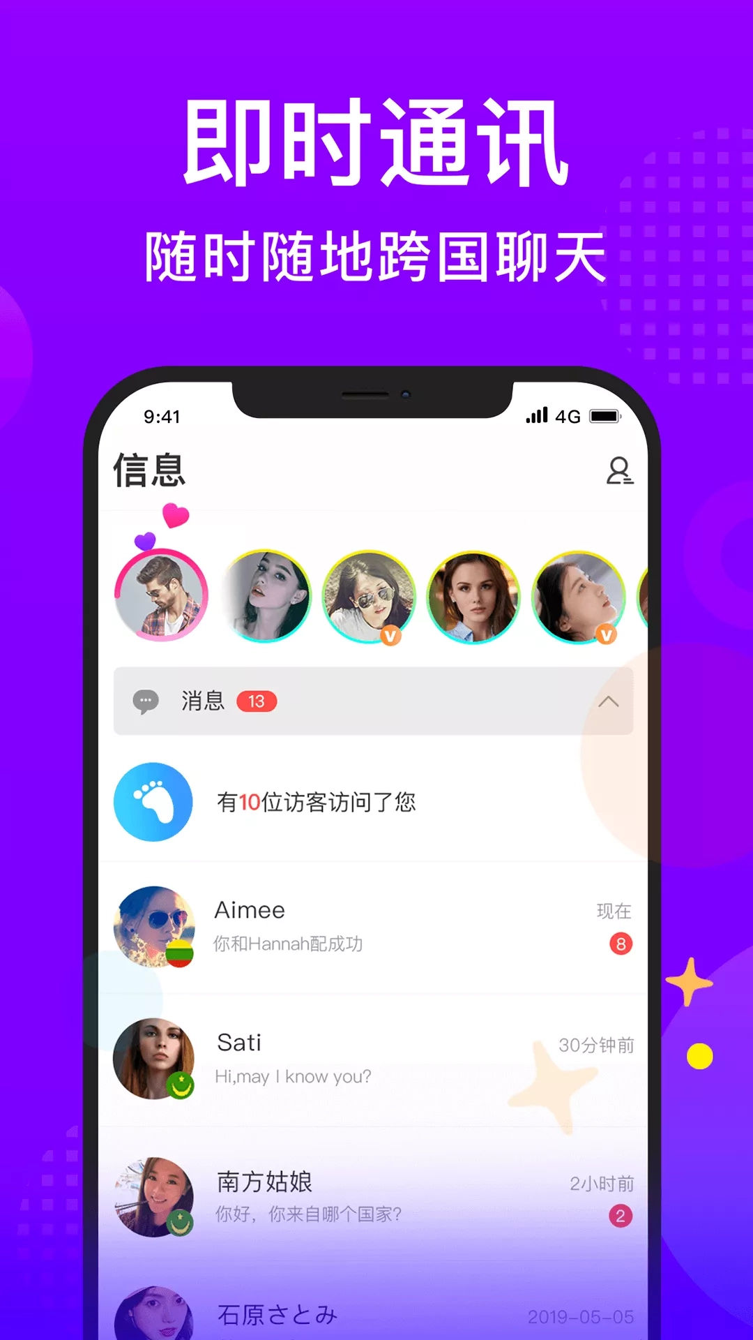 WorldTalk是一款全球5亿人都是在使用的交友APP,用户分别来自中国、欧美、日韩、俄罗斯、乌克兰、东南亚等180多个国家和地区,支持100多种语言即时翻译,轻松与全球各地的人聊天交友。 【主要功能】 ①全球交友,认识来自不同国家的朋友; ②支持文字、语音、视频聊天; ③选择自己喜欢的国家,找到自己喜欢的人; ④分享照片和视频,记录美好的生活,让全球的朋友看到; ⑤支持英语、中文、法语、德语、意大利语、俄语、日语、韩语、乌克兰语、越南语、西班牙语、葡萄牙语等100多种语言实时互译; ⑥赠送礼物给你心爱的人,吸引他/她的目光。 如果你有任何想法,欢迎联系我们 微博:WorldTalk国际交友 微信:WorldTalk国际交交 邮箱:worldtalk@zerophil.com QQ群:534650129