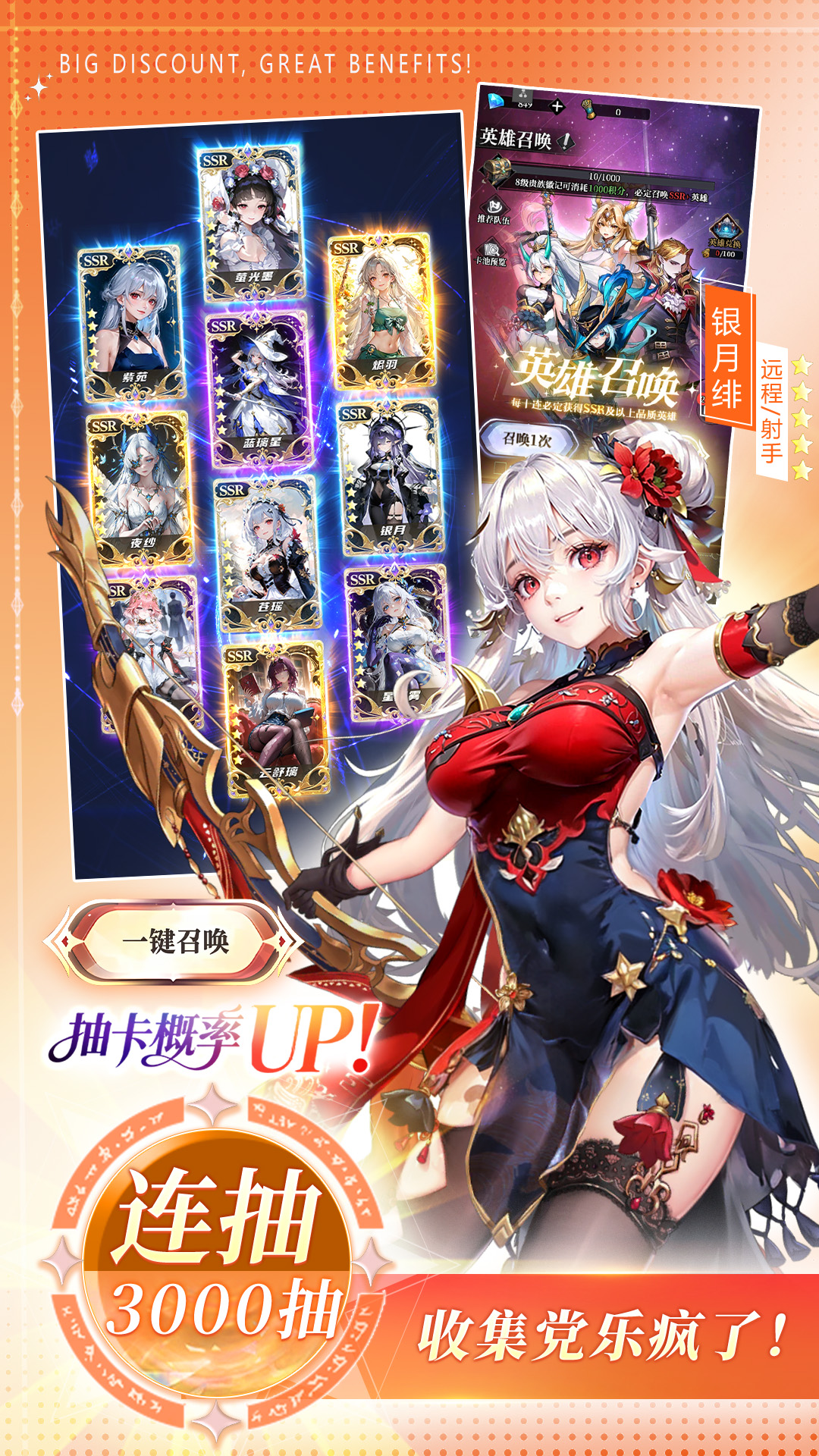 专享豪华礼包码:VIP666 VIP777 VIP888 VIP999<br>《幻想神话志》——神话策略卡牌手游爆燃来袭!在这里,充值0.01元就能当大佬,将资源打到白菜价!告别天价氪金,体验策略为王的纯粹卡牌乐趣,收集上古神魔,组建豪华阵容,开启你的超值神话征途!<br><br>【商场狂欢,0.01元即可称霸!】 <br>全商城白菜价! 充值任意档位,实付0.01元=百倍价值资源!小投入成就大神! <br>首充仅需0.01元! 立送SSR神将 + 海量抽卡券 + 万钻资源!开局碾压! <br>每日超值登录礼包! 神装、材料、抽卡券...0氪买爆,战力狂飙无压力!<br><br>【神魔集结,卡牌策略巅峰对决!】<br> 百位上古神魔化身华丽卡牌! 跨越东西方神话,收集你心中的至高神明! <br>深度策略布阵,智定乾坤!神魔羁绊、属性克制、烧脑搭配,运筹帷幄,以弱胜强才是真本事! <br>SSR神卡爆率飙升!全服SSR基础爆率大幅提升,搭配免费抽卡券海量送,轻松集齐核心神魔天团! <br><br>【免费畅玩,海量资源送不停!】 <br>上线即送1000连抽!开局神将任你选,欧皇非酋都能爽! <br>登录七天送核心SSR!每日签到领豪礼,强力神魔免费拿!<br>无限资源副本! 金币、经验、进阶材料... 挂机也能爆满仓,养成无忧!<br><br>【神卡进阶,合成觉醒逆天改命!】 <br>卡牌进阶升星!收集碎片,提升神魔品质与战力,解锁毁天灭地的终极技能!<br> 智能合成系统!多余卡牌一键合成高星狗粮或珍贵资源,零浪费,养成效率MAX! <br><br>【激情活动,盛宴永不落幕!】<br> 限时神将商店!指定强力SSR神魔直购,错过等一年! <br>BOSS挑战爆神装!挑战洪荒巨兽,高爆率掉落极品装备与稀有卡牌!<br> 全服争霸赛!策略布阵,角逐神话指挥官,赢取超低折专属豪礼与无上荣耀!<br><br>立即下载,开启你的神话争霸之旅!