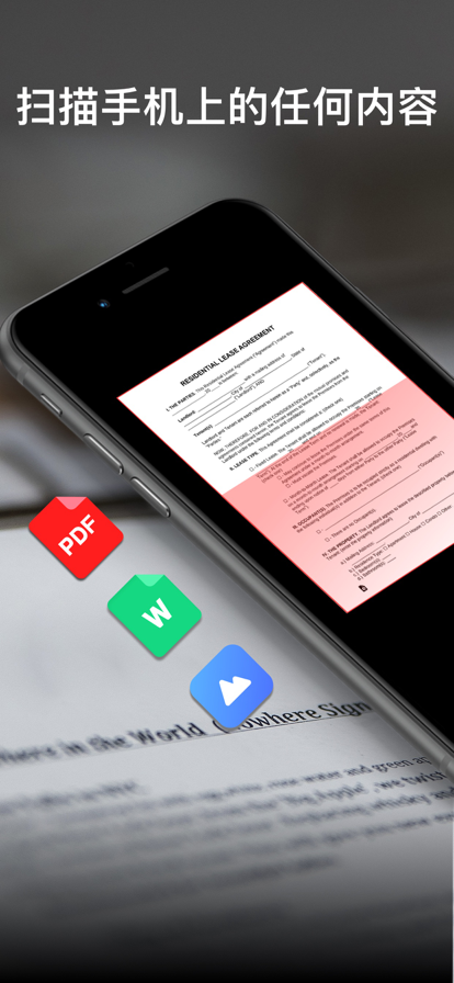 一款集文件扫描、图片文字提取识别、PDF 内容编辑、PDF 转 Word、电子签名等功能于一体的智能扫描软件。自动扫描,生成高清扫描件,支持JPEG、PDF 等多格式保存; 无水印扫描,整洁好看便于分享,兼有高精度OCR 文字识别、卡证识别、财务票据识别; 你的移动多功能扫描仪,文字识别、手写识别、文件扫描、证件扫描、表格识别、批量扫描识别一站式搞定。 【主要功能】 **文件扫描** -拍照自动扫描并识别文件、图片、书籍、名片等,可以将照片、图片转换为扫描件,并可以导出word、pdf、png等多种格式; -支持批量选择、批量扫描,高效办公;自由裁剪、旋转,文件编辑一次搞定; **证件扫描** -覆盖常用证件,更有财务票据识别扫描王;不再为报销发愁! -身份证复印件制作,告别文印店; **PDF转换** -PNG、PDF自由转换 **文档分类** -文字、表格、扫描件、卡片、翻译结果自动保存、智能分类,检索方便 仅使用您的 iPhone 就可以立刻扫描和打印任意书面、印刷或图形材料,包括: — 给你合作伙伴或客户的合同; — 名片; — 收据来跟踪你的支出; — 纸质笔记和心智地图来保存最好的想法以供备查; — 书本页面和文章以供今后阅读和分析; — 不提供数字拷贝的文本;