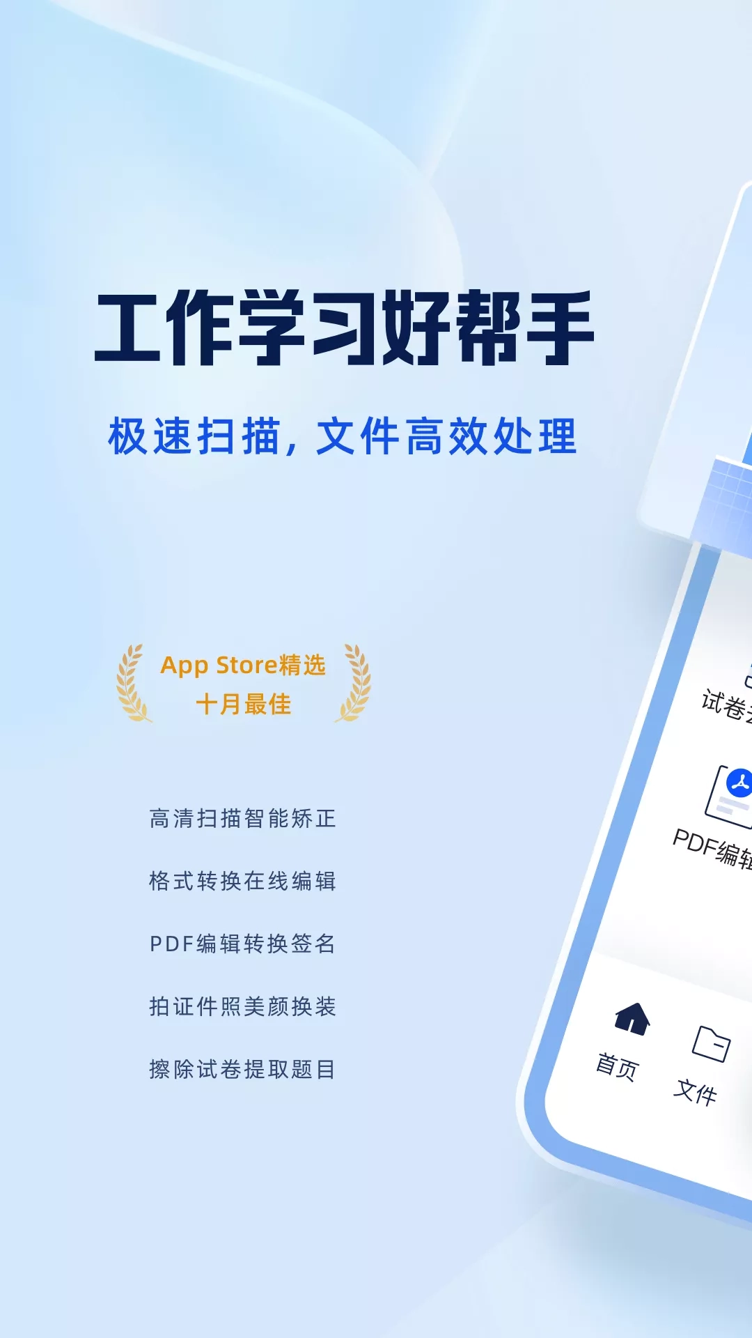 夸克扫描王是一款文件高效处理软件, 让纸质文件摆脱束缚, 用手机便捷扫描自动优化, 让文件整理更智能。 1、PDF阅读编辑器,内容自由编辑,PDF分割/合并/压缩/转Word,还能在线签名。 2、图片转文字,OCR文字自动识别,准确还原纸质文件的排版。 3、试卷擦除手写笔迹重练,课堂PTT讲义智能裁剪去除摩尔纹,学习更轻松。 4、重要文件, 随时复习高效查找, 不再为文件遗失而烦恼, 让你的工作学习更加轻松。 ————功能亮点———— 【高效处理文件】 ● 全能扫描,文件、证件、发票、书籍、绘画...电子屏幕轻松扫,智能美化生成PDF高清扫描件。 ● 提取文字,准确识别图片文本,支持逐字或按段落自由选择复制,还原排版转Word在线编辑。 ● PDF工具箱,阅读编辑器,PDF分割/合并/压缩/格式转换,在线添加签名、盖章、水印。 ● 拍证件照,出门办事必备,自拍抠图换底色,智能美颜、换装生成绝美证件照,多种专业规格任意挑选,再也不跑照相馆。 【学习必备工具】 ● 试卷去手写,拍照自动去除手写笔迹,一键还原空白试卷重练,错题攻克,高效学习。 ● 拍照翻译,图片内容准确识别,13+主流语种中外互译,生词释义,例句讲解助你理解透彻。 ● 记录屏幕,课堂教学PPT,拍摄完成智能矫正,去除屏幕摩尔纹图像内容更高清,OCR提取重点笔记一键复制。 【PDF阅读编辑/格式转换】 ● 强大的PDF阅读编辑器,文本/图片等内容自由编辑。 ● PDF快速分割/合并/提取/压缩,还能在线签名,添加/去除水印。 ● PDF与Word、Excel、图像等格式之间互相转换,转换后可保持文本、图像等内容的原始布局,还原版面。 【更多AI工具】 更多智能工具等你探索,魔法擦除图片中的路人,智能还原原图背景;老照片修复找回过去的记忆,破旧照片一键还原;对准生僻字一拍即得发音、释义、例句,扫描书籍两页一起拍智能裁剪两页,自动模式省时省力..... ————PC Web———— ● 直接访问 https://scan.quark.cn 或 使用PC浏览器搜索“夸克扫描王官网” ● 手机扫描件快捷「发送至电脑」,无需通过其他方式中转,双端文件自动同步,跨端无缝处理文件 ●上传电脑文件,自动裁剪美化,去除手写、水印、杂质,生成PDF/Word/Excel/图片等多种格式文件 ————微信小程序———— ● 微信小程序搜索“夸克扫描王”快捷扫描,同步云文件编辑