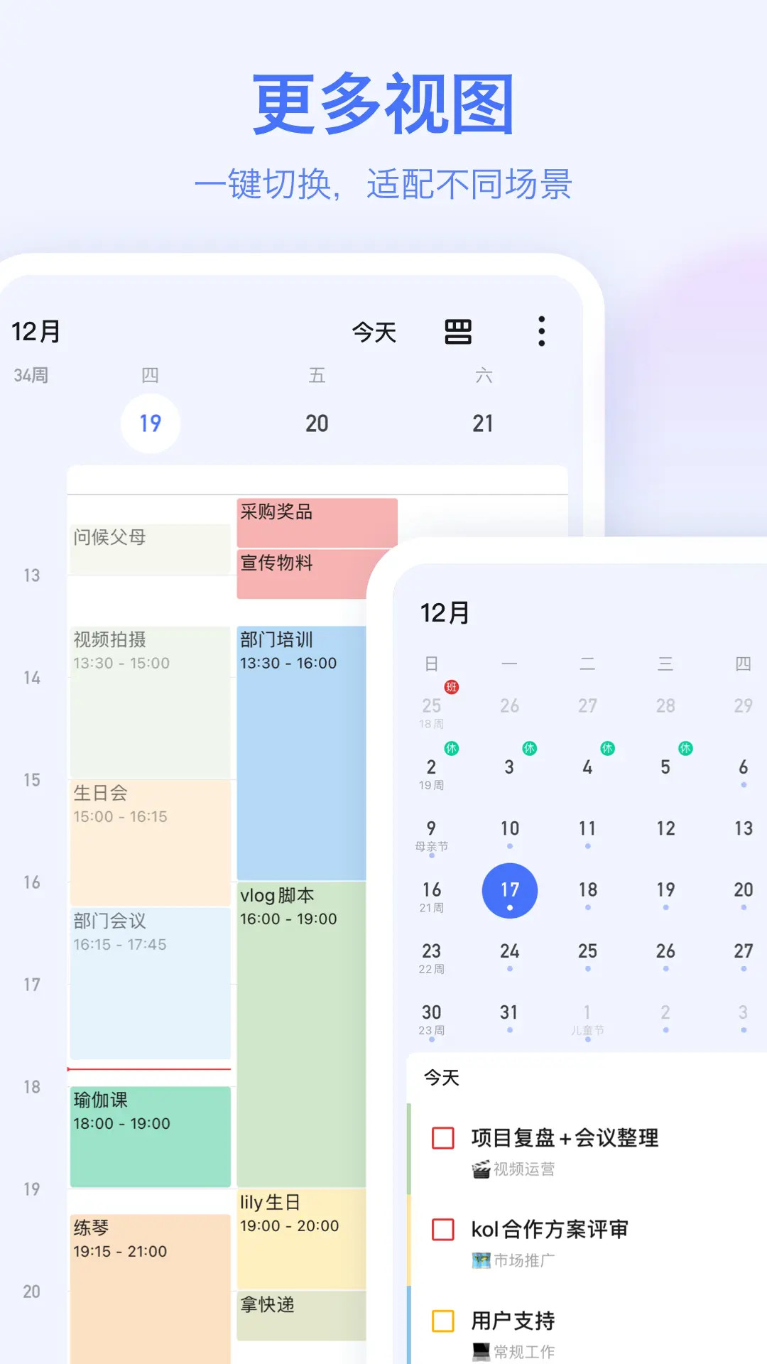 这是你的时间管理和行程助手应用,由你新建任务、日程,帮你管理计划、清单,还能添加备忘录备注和设定闹钟提醒事项 当日事当日清,让时间管理助手和行程助手协助你,提高学习、生活和工作效率! 1、日程计划随手记:轻点几步,快捷添加日程计划,管理你的课程,约会,任务等 2、管理任务清单:添加日程任务到清单列表,管理你的日程表、课程表、购物清单等 3、贴心提醒事项:设定闹钟闹铃,自定义计划提醒时间,不怕错过生日提醒、纪念日提醒 4、两种日程模式:时间轴、日历两种日程管理模式,纪念日、考试日标记一目了然