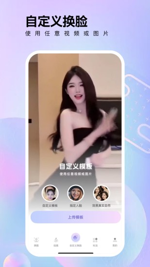 【AI换脸】 强大的AI算法为你提供超易上手的编辑功能和超乎想象的编辑效果。 各色各样的潮流模板,一键帮你制作。悄悄换脸让你的照片锦上添花 【风格百变】 超多人脸融合模板可供选择,丰富多元! 还可以通过本地上传照片/视频就可以进行体验。 婚纱、武侠、学生、国粹、名族风超多不同风格,让你随时随地进行疯狂变脸。 【古装换脸换装】 梦回古代,云裳羽衣,只需一张照片,即刻穿越感受华夏衣冠之美!唯美古风汉服,做个古装视频分享出去,马上让你的社交圈热闹起来,获得点赞无数 【旗袍秀场】 轻松一键特效,一秒做出旗袍走秀大片。 【自定义换脸】 新增自定义换脸,可以自己上传视频或照片进行ai合成换脸换妆,畅玩AI世界的乐趣 【AI文生图】 全新AI绘画,以字作画,独特的绘画风格,用你的灵感画出想象中的精彩画作