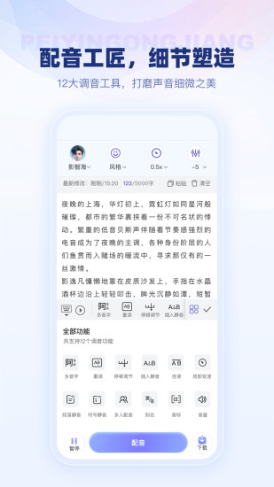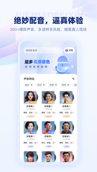 对口型视频配音大师是一款基于AI智能的软件,通过AI服务将文字合成语音,加上便捷的配音功能,支持配置语音音量,语调,语速快慢的调节,方便的个性化定制自己想要的声音,灵活自如。海量配音角色任您选择, 还可以给视频及图片配音。中文、英语、日语等多国语种,以及粤语、台湾话、东北话、四川话、湖南话等多地方言可供选择,还包含多种情绪、多种场景等百余种角色可供选择。其实配音真的很简单,快来体验吧。 [文字转语音]:语种、方言、语速、情绪等可供选择,一键导出mp3或wav文件; [对口型]:让视频中的演员说出你说的话,让图片说话; [人脸增强]:让图片视频中的人脸更清晰; [音频分离]:伴奏人声分离,多种乐器声音分离。