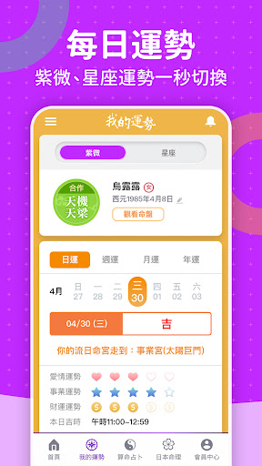【紫微斗数独特之处】<br>◎最实用的算命开运软件!<br>1,传统的紫微命理知识,算命解说深入浅出,简单易懂<br>2,紫微命盘分析天命,八字全面预测您的一生起伏<br>3,从生辰 八字来量身精算个人命盘,看各命宫、流年流月运势详尽算命解析,算命准确度更高!<br>4,算命大师赠言帮您排忧解难,趋吉避凶,开运改运,添财运、桃花开、广人脉、避疾厄、防血光、得功名、防破财、找商机!<br>5,开光灵符助您加快心愿达成<br>6,专业八字命理测算批八字,看事业发展,八字合婚,帮你情感 分析,指点迷津,解答人生疑惑,算命改命<br><br>◎最简单易用的算命软体!<br>1、查找方便、简单易懂!只要输入自己的出生年、月、时辰,就能快速得知个人的流年流月,每日运势!<br>2、足不出户,线上即可帮你排忧解难,开运改命!<br><br>【如何正确使用紫微斗数】<br>建立个人档案:点击左上角按钮【三】-【新增用户】,添加您的个人资讯(包括姓名、性别、生辰八字),完成<br>查看一生运势分析:添加个人档案后马上可以查看财运、情感、事业、人际、家宅运势等多项紫微命盘算命分析(温馨提示:部分内容需要付费解锁)<br>查看个人八字流年流月运势:点击首页“2023流年分析”/“流月运势”即可查询<br>专业测算算命:点击首页“专业测算”即可添加测算用户资讯(可建立多个用户资讯哦),然后挑选感兴趣的测算专案,进行八字预测<br>许愿点灯祈福:点击专业测算,选中许愿点灯,选择您所需要的祈福类型,进行点灯许愿流程(重点推荐犯太岁,运气差,想提升财运,爱情运者祈福使用)<br>若有任何问题,欢迎咨询我们的售后客服邮箱:customer@linghit.com<br><br>【我们在这里等您! 】<br>【脸书】每日新鲜命理咨询为您洞悉运程,助您顺顺利利! :https://www.facebook.com/linghit<br>【邮箱】您宝贵的建议、意见都欢迎告知我们,我们将尽一切可能改善! :customer@linghit.com