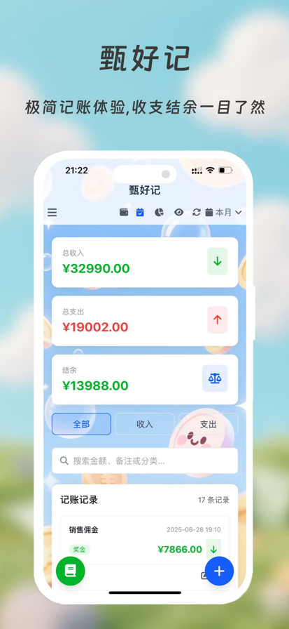 还在为繁杂无序的收支账目头疼?担心月光、难以实现存款目标?甄好记APP 一站式解决你的财务难题,全方位护航财富管理,让每一笔收支都井井有条! 分账本记账:支持个人、家庭、工作等多场景账本分类,一键切换不同账本,账目清晰可查。无论是日常买菜、项目经费,还是家庭旅游基金,各类收支独立管理,告别账目混乱,财务状况一目了然。 记账签到开盲盒:连续 7 日坚持记账签到,即可解锁神秘盲盒!数码礼包,居家礼包,项目资源,集卡!激励你养成每日记账好习惯。 存款计划:可分账本制定专属存款目标,自定义金额、助你步步为营,轻松实现财富积累。 预算设置:灵活设置每月总支出,帮你理性消费,拒绝冲动购物。 记账皮肤:清新自然、酷炫潮流、可爱萌趣等风格应有尽有。一键切换界面主题,打造独属于你的记账背景,让每一次打开 APP 都充满新鲜感。 加密计算器:内含隐私空间,私密安全,财务信息资料图片绝不泄露。 图片记账:消费后随手一拍,购物小票、支付凭证即刻变身清晰账目,方便随时核对,记账更高效。 记账模板:记账保存为模板,一键套用模板,快速完成记账,告别重复输入,节省时间,记账从未如此轻松。 大额设置:设置大笔大额,记账记录大额记账一目了然。