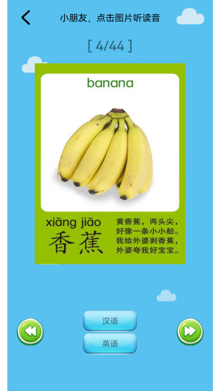 儿童看图识字是一款专为孩子们打造的全新早教软件,引领孩子们踏上知识的探险之旅。在这里,孩子们可以通过直观的图片认识汉字、词语,通过拼音学习标准发音,沉浸于有声绘本故事的海洋,还能背诵经典的古诗,为未来的学习打下坚实的基础。 软件特色: 1、看图识字:我们精选了上千个常用汉字和词语,并配以生动的图片。孩子可以通过直观的视觉刺激,轻松认识和理解汉字,提高记忆效果。 2、拼音学习:每个汉字都配有准确的拼音标注和真人发音。孩子们可以跟着标准发音练习,达到更好的学习效果。 3、绘本故事:我们提供上千本优质绘本,让孩子在阅读中认识新事物、拓展知识面。这些绘本有助于提高孩子的认知能力、心智能力和联动能力,培养良好的阅读习惯。 4、经典古诗集:精选适合儿童的经典古诗,配上言简意赅的译文和拼音标注。让孩子在学习古诗的同时,锻炼语言能力和文化素养。 让我们一起为孩子的学习之路播下希望的种子,用儿童看图识字APP陪伴他们快乐成长!