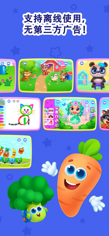 适合2-6岁宝宝的趣味学习游戏! 欢迎来到「趣味美食世界」——专为幼儿园小班益智互动设计的儿童学习软件,包含150多个寓教于乐的趣味小游戏。孩子们可以在玩耍中学习字母拼音、练习字母和数字描写、掌握1-20数字计数、认识形状和颜色、挑战逻辑解谜,还能锻炼精细动作能力。完全不需要网络也能体验全部内容——这款无网络游戏在iPad和iPhone上都能离线使用,是外出哄娃必备的手机游戏,无论自驾游、坐飞机还是在家安静玩耍都非常合适。 为什么「趣味美食世界」与众不同 「趣味美食世界」是由幼儿教育专家精心设计的综合性学前教育平台。它将好玩的儿童益智游戏与系统化的启蒙课程完美结合,能根据孩子的学习节奏自动调整难度。从有趣的拼音字母学习游戏、字母描红,到宝宝学数字和加减法的小游戏、逻辑思维训练和培养孩子专注力的游戏,每一个互动环节都能同时培养多项能力,让2-6岁的宝宝在幼儿园游戏中保持专注和兴趣。 为入学打好扎实基础,建立学习自信心 无论您的孩子是刚开始认识字母和颜色的2岁宝宝,还是正在准备幼小衔接数学思维训练的6岁儿童,「趣味美食世界」都能陪伴他们成长。这款儿童游戏3岁-6岁全年龄段适配,通过自适应挑战帮助每个孩子在合适的难度下学习,每一次进步都能增强他们的自信心和独立能力。 全面发展幼儿园阶段必备技能: • 早期识字与拼音启蒙 — 从幼儿识字开始打好语言基础 • 幼儿园数学与数字认知 — 轻松掌握宝宝数字学习 • 精细动作与书写准备 — 为写字做好充分准备 • 解决问题与逻辑思维 — 激发游戏益智思维发展 • 社交情感学习 — 学会照顾他人和表达情绪 • 专注力与观察力 — 培养学习好习惯 • 创造力与想象力 — 在娱乐游戏中释放天性 • 独立性与自信心 — 成长为自主学习的小学霸 150多个孩子喜欢的儿童教育游戏内容: • 语言启蒙: 字母游戏、拼音练习、字母描写训练、认字练习、培养阅读兴趣 • 数学启蒙: 认识和数数1-20、比较大小、10以内加减法、找规律等幼儿园数学启蒙内 • 形状与颜色: 通过互动玩法认识和分类各种形状颜色 • 益智解谜: 三个难度等级的拼图挑战,适应不同发展阶段 • 烹饪小厨师: 在趣味食谱中探索厨房技能和生活常识 • 照顾小宠物: 像医生游戏一样照料可爱的虚拟宠物,学习责任感 • 涂色创作: 作为画画软件儿童专区,激发艺术创造力 为什么这款全程无广告的良心儿童游戏受到家长推荐: • 100%无广告且内容安全 — 家长信赖的儿童教育游戏品质保障 • 完全离线使用 — 不耗流量,随时随地玩,无需联网也能体验全部内容,是不需要网络的单机儿童游戏 • 为入学做好充分准备 — 包含系统的幼儿园小班益智互动和小学数学启蒙内容 • 一个App全覆盖 — 集合150多个宝宝幼儿园游戏和儿童游戏2岁5以上适用的多学科内容 • iPad和iPhone通用 — 全家设备都能用 立即下载「趣味美食世界」,给孩子提供最好的启蒙学习方式!让孩子在这个家庭早教常用的趣味学习平台中快乐成长! 注:免费版应用仅部分截图内容开放使用。要获得完整版,您需要进行内购。 关于 ERUDITO ERUDITO 于2012 年由四位在儿童教育方面经验丰富的家长创办。经过快速发展,公司现有 250 名成员,包括专业设计师、艺术家、动画师和教育工作者。目前,我们已推出 30 多款应用程序,用户基数达到 9800 万。 我们的目标是提供寓教于乐的早教方法,通过儿童教育程序激发孩子热爱学习的天性。 如果您需要帮助,有问题,或想跟我们打招呼,请联系 support@eruditoplus.com http://eruditoplus.com/en http://eruditoplus.com/en/terms-of-use/ http://eruditoplus.com/en/privacy-policy/