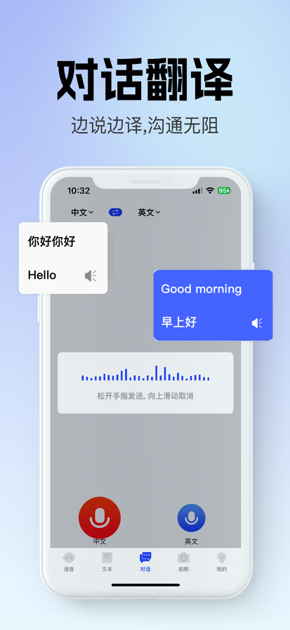 语音实时翻译: 毫秒级语音识别与翻译,结果直达耳机,只要一副普通耳机,即可解锁高大上的“同声传译”体验。 对话翻译: 面对面双向翻译,支持实时对讲,让您出国旅游、商务洽谈沟通无阻。 方言及语种扩充: 语音识别新增四川话、粤语实时翻译;翻译语种重磅加入法语、日语等,走遍世界都不怕。 文本翻译: 深度集成 AI 智能翻译引擎,精准捕捉语义,翻译结果更自然、更地道。 拍照翻译: 随手一拍,即刻翻译。路牌、菜单、说明书,一目了然。