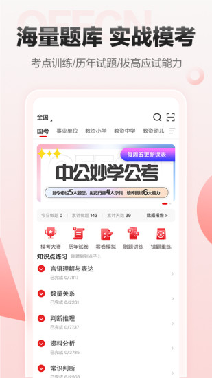 中公教育官方在线教育平台 中公网校APP是中公教育的官方的在线教育平台,无广告干扰,界面清爽简洁,操作简单便捷,让您轻松学习、专注学习。 中公网校是中公教育旗下的大型的多品类职业教育机构,主营业务横跨公务员、事业单位、教师资格证考试、学历提升和职业能力培训等,提供超过100个品类的综合职业就业培训服务。中公教育始终坚持“学员的事是最重要的事”这一服务理念,不断提升教学能力和服务水准,致力于为学员提供更完善、更优质的职业培训。 备考公务员考试、事业单位、教师资格证等公职考试打下坚实基础。 关注我们新浪微博:@中公网校 全国统一咨询专线:400-900-8885
