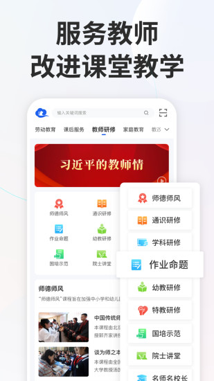 “和教育全国版”是中国移动面向中小学师生和家长推出的一款集在线教育学习及家校互动沟通为一体的应用软件,其中整合百万优质学科资源并与近千家名校合作,共同帮助学生提高学习成绩。 【核心功能】 1、家校互动 家校互动将课堂互动、学校管理、教育云平台深入整合,为学校、家庭、个人创建的一个科学、高效、和谐、智慧的家校互动平台,有效减轻老师工作负担,推动家长深度参与教育,形成统一的教育合力,使教育能量扩大化,帮助孩子健康成长。 2、教育资源 教育资源联合新东方等知名教育机构联合打造,内容涵盖全年级全学科教材,为学生提供辅助性的学习资料,全面提高学生学习成绩;为教师提供大量的优质教学资源,包含教案、课件、素材、习题等,提供一站式的教学备课服务。 3、应用中心 应用中心致力于打造多角色各学段教育产品完美整合的集成应用产品,并提供上架、免费应用、优惠、使用排行榜等全方位多维度的教育应用展现和一站式的订购使用。 4、教育资讯 教育资讯聚焦K12教育垂直领域,内容涵盖行业动态、升学考试等七个频道,针对各地用户提供地方政策和分省资讯,及时掌握新鲜全面的教育动态。