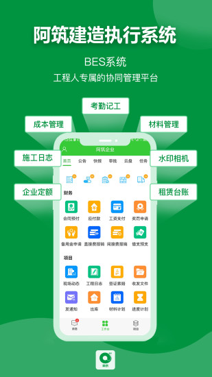 【应用介绍】 阿筑是一款专注于工程管理服务的软件,系统通过先进的云计算,使工程管理更高效,成本更可控,让数据成为核心,为企业服务。秉承专业、易用、高效为宗旨,更广泛适用于工程行业管理人员,全方位解决工程行业管理的痛点,促进行业向数据化、信息化转型。 【核心功能】 考勤记工 现场管理 结算管理 进度管理 审批管理 企业定额 项目财务 成本管理 材料管理 库存管理 租赁台账 施工日志 财务中心 税票管理 合同管理 采购询价 空间文件 任务 【核心优势】 1、支持跨企业协作,数据互通,信息共享。 2、图文视频在线编辑,施工现场全景呈现。 3、业务链自动流转,分工协作,无需干预。 4、数据自动收集整理,智能辅助管控成本。 5、执行报告一键生成,绩效考核科学客观。 6、多页面交互,界面清爽不冗余,易操作。 7、财务数据实时更新,各类图表简洁明了。 【关注阿筑】 感谢您使用阿筑建造执行系统,有任何问题和意见均可通过以下方式反馈: 微信公众号:阿筑 客服热线:400-0818-558 官方网站:www.azhu.co