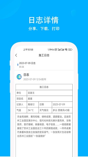 这是一款工程施工拍照管理应用,按照工程及施工地点管理施工照片的水印相机;在照片上添加水印:做施工记号,记录经纬度、海拔、方位角度、地理位置、天气、工程信息及自定义备注等。 主要功能 1.工程及施工地点管理。 2.添加水印:做施工记号、记录经纬度、海拔、方位角度、地理位置、天气、工程信息及自定义备注等;多种不同行业风格的水印可选。 3.照片编辑涂鸦及分享好友,一键导航,一键导出。 4.云盘存储,云端备份工程信息及照片,多设备间同步。 5.团队共享,邀请团队成员加入工程,管理团队成员的施工拍照。 6.云端相册,工程备忘录,拼图汇报。 适用于市政工程、交通工程、电力工程、天网工程、土建工程、园林绿化、市政道路清扫保洁、市政设施施工、装修施工、建筑施工等各种工程的拍照分类归档。