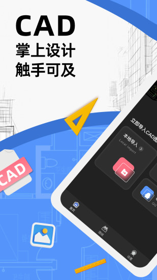 CAD制图软件是一款针对机械,工程建筑、施工、现场勘测、家居装饰装修、机械制图、测量测绘、一建、二建等行业的人群,提供CAD手机看图、CAD制图、CAD快速看图、CAD测量、CAD正交矩形绘制、画图设计、图形设计等功能的制图软件。 手机轻松接收图纸,一键打开显示无乱码,是一款手机CAD软件。微信QQ接收的文件,支持一键打开,专业DWG图纸显示更完整、更精准,支持DWG图纸编辑、DWG批注、DWG测量、DWG标注、CAD测量、文字查找替换等功能。 图纸支持DWG导出、PDF导出。 【CAD看图】 1.支持DWG图纸格式看图,专业的解析告别图纸乱码,显示更加完整。 2.不同的文件管理,本地、所有图纸及收藏文件分门别类,更加一目了然。搜索的按钮让你查找图纸更加便利,同时可根据喜好切换不同的视图模式。 3.手机看图:QQ、微信的DWG图纸文件,一键打开,方便快捷。 4.CAD标注:支持对图纸进行标注,提供箭头、引线标注、云线、直线、图片、音频、文字、圆形等不同类型的标注,支持线条文字颜色选择,让标注更加清晰明了,沟通更便利。 【CAD制图】 1.CAD制图:手机上也能实现CAD制图,提供