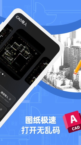 同事发的图纸看不了?客户想看设计图没有带电脑?只能查看图纸无法批注沟通?这是一款CAD图纸、批注图纸、分享图纸、沟通图纸、管理图纸的CAD看图制图软件。让你再手机上就可以进行CAD看图、CAD制图、图纸批注(CAD批注)、图纸沟通等技术交流,是一款手机cad看图制图软件。 这是一款看图纸CAD看图软件,提供DWG格式的文件图纸查看、图纸编辑、CAD看图、CAD制图、手机cad快速看图、CAD测绘等功能,同时可进行图纸分享、上传云图,一部手机即可实现图纸的沟通、协作,提高办公效率。 1. CAD手机看图,便捷高效 CAD图纸的支持直接打开微信、QQ里接收的图纸文件,极速浏览AutoCAD和各类建筑、工程、装修、园林等CAD图纸,全面兼容。真矢量CAD图纸显示,云字体提供CAD字库,手机上即可完美显示图纸,手机上实现CAD看图、CAD快速看图。 2. CAD批注,一键分享上传 支持语音、照片、文字、箭头、图形等多种方式对图纸进行批注,基于图纸进行专业技术沟通,支持一键分享图纸给同事,或上传云图保存,提高了工作效率。 3. 图纸分类管理 针对不同来源的CAD图纸进行分类管理,并可通过文件名一键搜索图纸、查找图纸,手机上查看CAD图纸更便捷。 4. CAD制图 手机上也可实现CAD制图、绘图,在手机上新建CAD图纸,进行CAD图纸的绘制、测量、批注、文字查找等功能,还有正交绘制实现直线绘制、矩形绘制的功能。