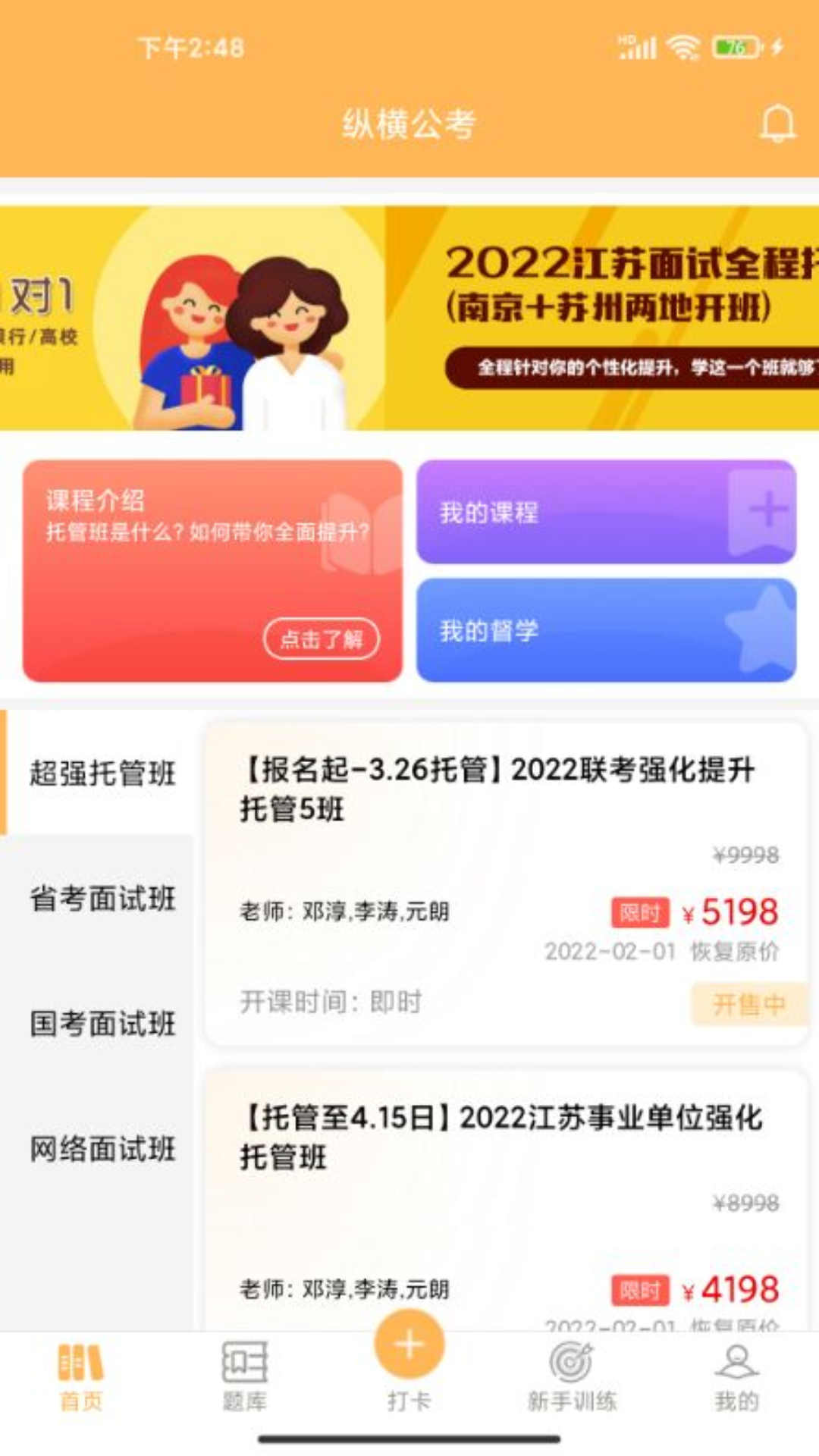直播课<br> 纵横公考推出笔试、面试的直播课。借助网络直播平台, 通过更加优惠的价格,精致的服务,和考生已录上岸。<br> 亮点1:必修与选修的结合。除提供必修课外,还会有几千节选修课时。选修, 含专项考点强化、1对1解析点评等,根据测评有针对性提供,满足一切个性化需求。<br> 亮点2:授课老师亲自答疑。听谁讲课,就想听谁答疑!明明是你的一句话,让我陷入沉思! 你咋马上可以讲完就走!授课老师亲自答疑,扫平你的个性化问题。纵横,木有助教!<br> 亮点3:最牛老师做班主任。谁能当班主任?班主任要知道,孩子在各情况下,该做的,不该做的。 班主任得拥有,无止境的责任心,强大的公考知识储备。所以班主任必须是班级里牛哄哄老师。<br><br><br>题库<br> 纵横公考题库。本着保证足够量的原则, 精选题目,配上逻辑清晰且精益求精的解析。让考生的每道题目绝不白做!<br><br><br>打卡<br> 纵横公考打卡,申论和面试的积累储备,坚持是一种持之以恒的生活方式。但看似简单的事情,实现起来确很难。纵横打卡,通过每天跟随老师打卡的方式帮助你养成良好的学习习惯和时间规划。<br><br><br>新手训练<br> 纵横公考新手训练营。适合公考笔试零基础的同学。训练营覆盖了公考笔试全部入门考点,包含1000分钟行测+申论新手,游戏化闯关入门公考笔试。<br><br> 纵横公考是一个大型公考励志平台,由邓淳博士创立,本着“用心,让每个学员上岸”的追求,纵横公考不断追踪考生的公考学习路径,提供一站式的贴心服务,努力让每个学员上岸。<br><br>官方微博:纵横公考<br>微信公众平台:纵横公考<br>官方网址:www.zonghenggongkao.cn