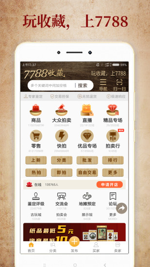 7788钱币是专业的钱币收藏、鉴定、投资、加价交易平台,主要提供专业的钱币分类目录、权威专家鉴定、交流会和拍卖会信息、钱币论坛交流以及多种交易模式等版块功能。 【经营范围】:古币古泉,花钱/厌胜钱,民国钱币,银元,铜元/银票,古钞,人民币,纪念钞,金银币,纪念币,港澳台钱币,测试钞,外国钱币,钱币收藏工具等 【交易模式】:零售、批发、大众加价、快速加价、自由交易、约定订单等多种交易模式。 【APP功能】: 1、商品上架实现快速连拍、多图同传的便捷功能; 2、在线交易信息的时时提示系统; 3、手机支付宝、手机微信支付功能; 4、分享到微信、朋友圈、QQ好友、QQ空间功能; 5、信息通知推送功能; 6、商品发布、商品买卖、订单商谈、商品搜索、好友交流等等主要功能。