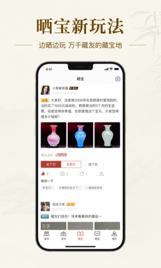 华夏收藏专注于古玩艺术品收藏行业18年,为广大古玩、文玩、艺术品等玩家搭建的集网站、手机、微信小程序、微信朋友圈等一体的交易交流平台。我们从保护收藏人与收藏品出发,努力推动收藏品交易市场的健康透明有序,践行弘扬华夏收藏文化的企业使命,已经成为具备鉴定估价、交易、直播、拍卖、修复、交流、资讯百科等全方位功能的专业平台。 产品特点: 1、【地摊捡漏】海量藏品每天更新上万件,人人都想捡到漏,玉器、瓷器、珠宝等各类古玩藏品任你挑! 2、【议价商品】看上的藏品可以直接砍价! 3、【专场拍卖】甄选品质商家,挑选优质好货,让好藏品获得更高价值! 4、【鉴赏直播】买卖沟通更直观,更高效! 5、【估价鉴定】300位业内行家坐镇,为您在线鉴定估价,为华夏藏品品质保驾护航! 6、【藏品修复】各行业几十年修复经验的专家坐镇,让您的瓷器、书画、钱币等恢复如新! 7、【社区交流】社区精选内容更新不断,结交志趣相投的好友和老师! 联系我们: 官方网站:http://www.cang.com 客服电话:0571-87357345,贴心服务,保证买家的合法权益 微信公众号:华夏