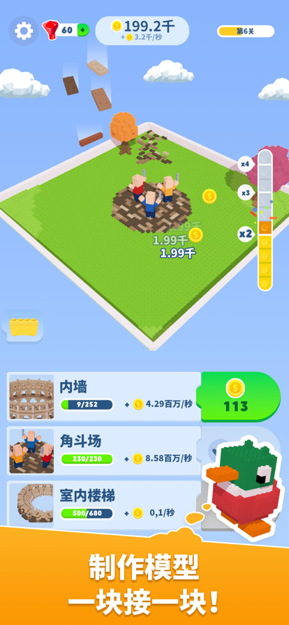 ► 搭方块也可以如此欢乐 这是一款经典的建造者游戏,可以让你用砖块搭建出丰富多样的建筑和场景。作为一个初出茅庐的建筑师,你要不断努力升级,慢慢打造出复杂程度越来越高的建筑组合。这款令人心满意足的休闲游戏绝对能让你重拾童年欢乐,找回你那失落已久的想象力! 游戏中还提供许多乐趣满满的建筑谜题,可以让你在尽情发挥创造力的同时锻炼思维。写作时遇到了瓶颈,或是生活中遇到了难以逾越的心理障碍?在这款能让你突破一切障碍的建造游戏里,你可以把它当成一大堆砖块,一口气推翻它! ► 用方块搭出属于你自己的世界 只需按照屏幕上的简单指导来操作,即可用砖块打造出属于你自己的专业级精细3D建模!找到合适的砖块后,只要轻点一下,即可把它添加到你的建筑物上。五彩缤纷的砖块,栩栩如生的场景,让各个年龄段的建筑爱好者都对这款建造游戏爱不释手! 在《建造者3D》中,你永远不必担心弄丢或是撬坏了哪个砖块,也不会伤到自己的手指,因为这一切都是虚拟图像!你可以尽情体验亲自动手的乐趣,却不用忍受杂乱无章的房间,更不会发生意外踩到玩具的情况。哎哟! ► 游戏特色: • 几十套建筑图纸,200多种形状各异的互锁式零件。无论人物模型还是错综复杂的载具,这款建造者游戏可谓是应有尽有! • 妙趣横生的建筑组合,诸如自由女神像 、战场 、中世纪城堡 、古罗马 、飞船内部…让你永远不会厌倦!你可以造一个送披萨的外卖小哥,让他手里举着比萨斜塔,也可以搭一些跟时下热门话题息息相关的场景,比如大选辩论会场之类。 • 简单扼要的说明、清楚明了的3D建模,让你永远不会有卡关的苦恼。只要找到你需要的那块零件,把它插到相应的位置上就够了! • 易用性极强的操作界面,让任何人都可以成为建筑师!除此之外,这款游戏还有着美轮美奂的精致画面和流畅至极的动画效果,让整个建造体验灵动而富有生机。 • 这款令人心满意足的游戏能让你原汁原味地体验到在现实世界中搭建建筑组合的乐趣,从裁开纸箱、撕破纸袋,到堆叠方块,再到布置搭建完毕的场景,一切纤毫毕现。游戏自带震动功能(可以在设置选项内自由开关),甚至可以精确复制出在现实生活中将两块模型零件拼到一起时的“咔哒”声!既然用指尖轻轻一点就能体验到这种快感,何必还要用真实的模型去折磨自己呢? • 完成一套组合,即可解锁特殊的黄金包裹,让你用更高难度的模型来添加一些新的元素。你永远不知道等待着你的究竟会是什么! 无论你是想锻炼自己的大脑,还是怀念童年时代特有的惊奇感,这款建造游戏都可以满足你!只要你抽出一点时间,放松一下身心,然后尽情地堆砖块就好了!现在就下载《建造者3D》,开始你的建筑之旅吧!