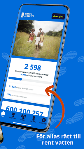 下载应用程序并注册。您只需将该应用程序连接到您的健康应用程序,然后即可加入并与我们一起计算步数。您可以看到您在排行榜中的位置、您走了多远、我们一起走了多远,如果您与您的公司或组织一起登记您的步数,您还可以看到您的公司和您的团队的排行榜。<br><br>如今,7.03 亿人无法获得清洁水。在十分之七的缺水家庭中,女孩和妇女的任务就是为家人取水,这项工作往往每天需要几个小时。<br>我们三月份的目标是总共行走至少 7.03 亿步——为每个无法获得清洁水的人迈出一步。<br><br>每天挑水的负担意味着妇女没有时间工作和赚取收入,许多女孩被迫辍学。这导致长期陷入贫困的风险更大。<br><br>为了强调每个人获得清洁水的权利,水援助组织每年三月都会开展“为水游行”活动。在“水游行”期间,我们提请人们注意水危机对全世界女孩和妇女造成的后果。<br><br>当您参与“为水游行”时,您可以在与他人共享欢乐的同时为一个更加平等的世界做出贡献!<br><br>立即下载应用程序并在三月份加入我们!一步一步走向更美好的世界。<br><br><br>水援助 2024