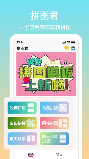 拼图君是一个集竖向拼图、横向拼接、聊天记录拼图、网格拼图、自由拼接、布局拼接于一身的全能图片拼接工具,更有超好看的模板不定期更新;还支持多尺寸画布、边框、顺序自由调节,轻松拼图,享受多图图片的快捷和乐趣。超级简单好用的拼图软件! 【竖向拼接】&【横向拼接】 多张图片意见拼接 自定义边框设置 满足旅行风景和日常点滴,还是美食打卡记录场景 【网格拼图】 将多张照片拼凑成网格,四宫格、九宫格拼图赞爆朋友圈 【自由拼接】 多张图片自由拼接 创意搭配制作无限可能 【聊天记录拼接】 聊天记录丝滑拼接 【布局拼接】 多图轻松排版 多种比例及边框任意调节 【拼图模板】 多种主题模板一键使用 轻松让你的图片赞爆朋友圈
