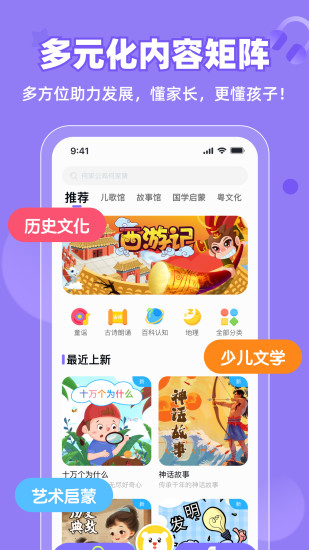 【多多早教】是一款宝宝非常喜爱的认知学本领的APP,丰富的亲子互动场景,舞蹈绘画手工才艺的兴趣培养,儿歌故事动画绘本等,抓住小朋友喜欢的兴趣爱好针对性培养,让学知识变得更有乐趣,让孩子的童年更加快乐! 产品特色 【全面开发宝宝智力】 培养宝宝的综合能力,智商&情商双向发展。增加亲子互动,提升认知趣味性,让宝宝快乐学本领。 不仅有形形色色的儿童亲子互动场景,角色扮演、认知百科、休闲益智、思维拓展、艺术创造等多种类别,全面开发宝宝智力,培养宝宝逻辑思维能力;还有国学才艺舞蹈手工绘画的兴趣培养,从小对宝宝进行艺术熏陶,培养宝宝的艺术修养。 【海量儿歌故事动画】 海量儿歌故事动画资源,丰富宝宝的视野和认知世界。由儿歌多多团队精心挑选制作的儿歌系列动画片,丰富的视听体验,萌娃绝搭的哄娃神器! 超多小朋友喜爱的动画明星都在这里聚集,可爱萌趣的卡通形象陪宝宝一起度过快乐的童年! 【异域文化陪伴成长】 海量英文儿歌、正版英文动画片,带领宝宝感受不一样的异域文化奇妙氛围,在轻松愉悦的状态下了解感受不一样的文化底蕴,开拓宝宝视野。