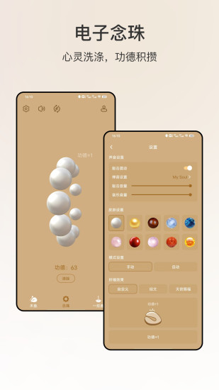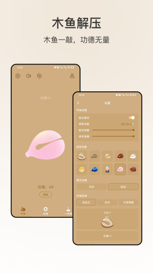 这是一款模拟木鱼修行解压App,融合电子木鱼、念珠与一炷香元素的解压应用,通过模拟真实木鱼敲击的效果,不仅可以让心灵安静下来,让烦恼远离,还能通过一炷香充当可靠的木鱼倒计时小助手。 【电子木鱼】模拟传统木鱼的敲击声效,带您领略禅意之美。每一次敲击,都仿佛是在与心灵对话,让您在忙碌的生活中找到片刻的宁静。 【念珠】为您提供更加丰富的修行体验。拨动念珠,感受指尖的流转与心灵的沉淀,让您在修行中找到最适合自己的方式。 【一炷香】象征着心灵的净化与修行的虔诚。在应用中,您可以点燃一炷香,让它陪伴您度过修行的时光。随着香火的燃烧,您的内心也将逐渐平静,压力与烦恼也随之消散。 【音乐助眠】伴随音乐在耳边环绕,躁动的心得以平静,让您能改快速入眠。 同时,您可以根据自身喜好,选择不同的敲击方式、木鱼皮肤、悬浮文字,总有一款是您的心中所爱,快来体验功德+1吧~