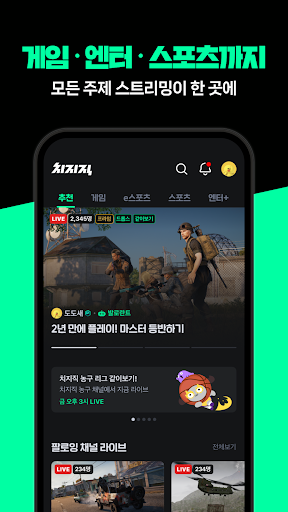 欢迎来到 Chijijik,直播餐厅!<br><br>与主播一起“Tiki-Taka”竞技<br>- 与众多主播实时互动的乐趣<br>- 轻松浏览精彩片段<br><br>精彩电竞直播<br>- LCK、EWC 和 GLS 等重要赛事,尽在一处<br>- 随时随地畅享高清流畅直播,为精彩赛事加油助威<br><br>体育赛事直播也同样快速<br>- 使用 Prime 内容观看重要比赛<br>- 热门足球、棒球和排球联赛的直播<br><br>Enter+ 全天候 24/7 一起观看<br>- 观看传奇娱乐节目、电视剧和主播<br>- 直播颁奖典礼、演唱会等节日<br>======================================================================================================================= [所需访问权限]<br>- 相机:您可以将照片附加到帖子中,也可以将其用作头像。- 通知:您可以接收公告、活动和新帖子的通知。(仅适用于操作系统 13.0 或更高版本的设备。)<br>- 文件和媒体(照片和视频):用于将文件附加到帖子和评论,或用于个人资料设置。<br><br>----<br>开发者联系方式:<br>1588-3820<br>京畿道城南市盆唐区亭子一路 95 号,NAVER 1784,13561