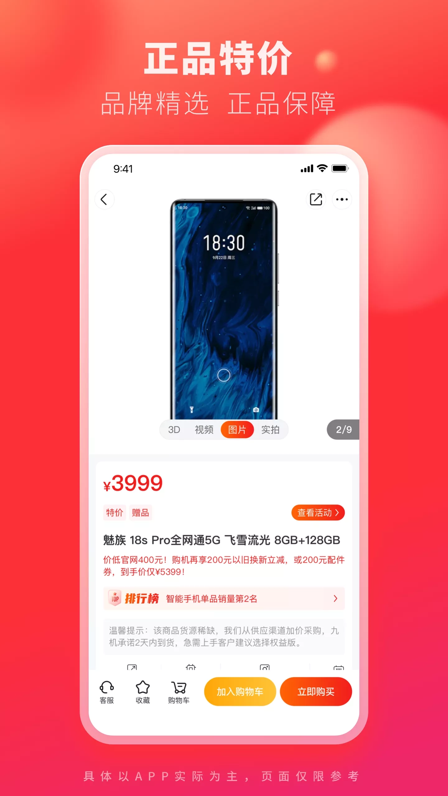 聚美优品限时特卖商城,全场品牌有保障。化妆品,轻奢,母婴,零食,给你更多优选好货—— 【限量抢购】每日10点特价团,两件包邮 【专享活动】新人一元购、好友凑团,更多商品低价让你尖叫 【现金红包】输入口令立刻领取现金红包 【专柜发货】线上下单,专柜发货,全新购物体验 【真品授权】超百家品牌官方入驻授权,美妆、护肤、服饰、母婴应有尽有;中国化妆品真品联盟,每件商品均可查询防伪码进行验真 【货到付款】支持货到付款,一切只为爱美的你放心购买 极速免税店,飞一般的购物体验! 【品牌】海外直采,品牌官方授权;海关监管,打破传统层层代理模式 【极速】闪电发货,3天就能到货;国内物流,订单状态实时监控 【省钱】海外价格,直接享受品牌爆款:人民币支付,尽享低价 【售后】七天包退,拆封无理由退货;国内售后,为您承担高达10元邮费 立即下载,更多惊喜!
