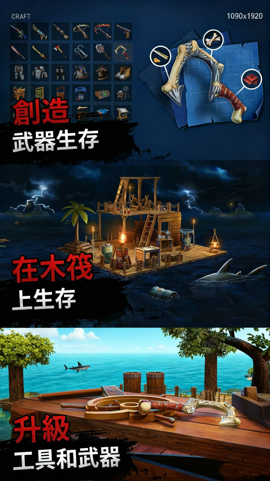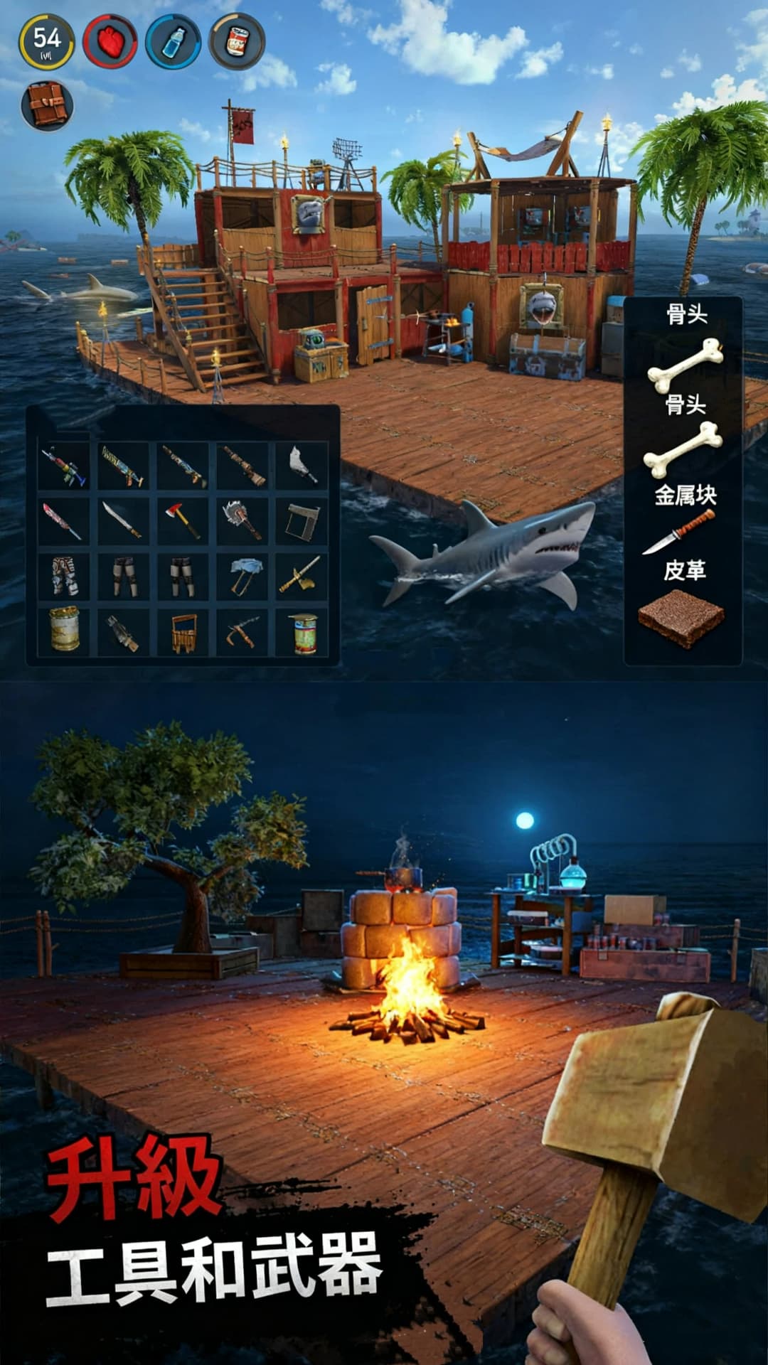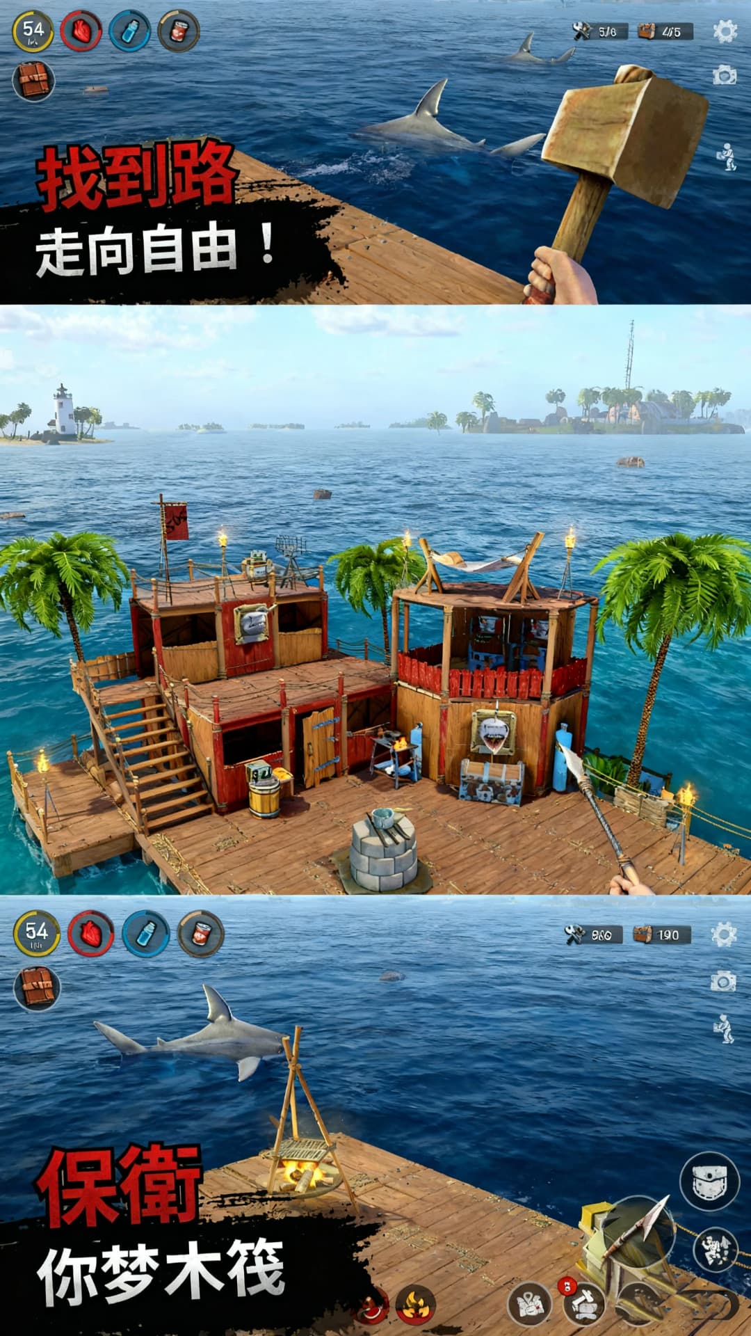 一场可怕的飞机坠毁夺走了所有乘客和机组人员的生命......你是幸存者,现在你走出了文明。在海洋周围,炎热的阳光和饥饿的鲨鱼,一个几乎绝望的情况让你的肾上腺素飙升。你只有一个目标 - 活着。 救生筏上的生存模拟器会将你带入海洋中的史诗般的冒险之旅!远离人类和文明,超越无限的视野。游戏的主要目标是尽可能长时间保持活力,为此,您需要进行制作和建设 - 收集资源,改进木筏并在木筏上建造一个庇护所。不要忘记,干渴和饥饿并不是唯一的危险。确保鲨鱼袭击不会破坏你的生存计划! 游戏亮点: 1、游戏采用了模拟真实的CG级别画质,为玩家呈现一个更加清晰和细腻的世界 2、全新的3D引擎,构建一个菱角分明的立体世界,让游戏的沉浸感更加的强烈 3、众多不同的道具和物资,都是玩家能够在海上活下去的资本 游戏特点: 1、第一人称视角的海洋漂流; 2、获取海面上漂流的资源生存; 3、钓鱼净水,补充体能; 4、抵御鲨鱼袭击,甚至狩猎它们; 5、只要功夫深,木筏变游轮。 游戏玩法: 1、灵活的操作方式,展示玩家的技术。 2、丰富多样的玩法,满足不同玩家的需求。 3、艰难求生,考验自己的生存极限。
