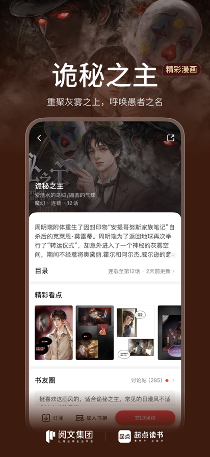 起点中文网官方移动端app,畅享正版原创网文,加入书友圈,和原创作家近距离互动。 起点读书品牌全新升级,发布全新品牌主张“看神作 上起点”,致力于为用户持续提供优质且丰富的精品内容。 ◉ 超热超全的原创小说书城,中国网络文学的起点,亿万忠实读者的选择~ 【热门内容】正版原著、精品有声、热门漫画火爆来袭,期待与你相遇; 《重启人生》:当人生按下重启键,似乎一切都…… 《哥布林重度依赖》:一只哥布林的赏金是三枚银币 【分类齐全】全类别热门图书随心看,玄幻、奇幻、言情、仙侠、武侠、都市、历史、游戏、科幻、二次元等,给你想要的一切! 【书单广场】不得不看的精选合辑,资深书迷倾情奉献,请允许我们拯救你的书荒; ◉ 丝般顺滑的阅读体验和百家争鸣的书评天地,让你彻底沉浸于故事的世界~ 【体验至上】赏心悦目的视觉效果及轻松舒适的阅读界面,一切为你量身定制; 【大神齐聚】名家名作汇聚一堂,速来膜拜你心中的大神~作家感言让真实的大神不再遥远; 【畅所欲言】更直接的交流、吐槽社区,更真实地和主人公共同成长; ◉ 更多贴心功能和服务等你探索~ 【免费读书】免费新书热书天天送,让你根本停不下来! 【活动中心】精彩活动集结,边玩边赚钱,福利不停歇; 【智能推荐】私人定制,精选推荐,转角遇见你的真爱女主; 【云端同步】书架、阅读进度、书签、笔记自动云同步; 【用户书单】一步创建专属书单,从此爱上分享和发现。 ………………起点读书 • 热门原著……………… 《庆余年》:余年庆有余,不负韶华,不负卿。愿山河无恙,人间皆安。 《大奉打更人》:神探修仙,纵横大奉! 《赘婿》:愤怒的香蕉经典小说,郭麒麟、宋轶主演热播影视剧同名原著; 《龙族V悼亡者的归来》:江南新作,热血龙族,少年归来; 《长安十二时辰》:易烊千玺主演,口碑炸裂热播剧集同名小说; 《上海堡垒》:鹿晗、舒淇领衔主演科幻战争电影,江南同名小说; 《黄金瞳》:张艺兴、王紫璇领衔主演都市探险剧同名小说; 《流浪地球》:刘慈欣科幻小说,大热电影原著; 《全职高手》:蝴蝶蓝经典大作,超燃热播动漫; 《你和我的倾城时光》:赵丽颖主演热播都市商战剧,改编自丁墨同名小说; 更有《三体》、《斗破苍穹》、《星辰变》、《莽荒纪》、《琅琊榜》、《黄金瞳》、《斗罗大陆》、《萌妻食神》《异常生物见闻录》等火热原著,以及大热手游《大主宰》、《完美世界》、《斗破苍穹》原著小说,快一起加入书架吧! 【起点读书会员卡自动订阅服务说明】 1、订阅服务:畅享卡-连续包月(1个月) 2、订阅价格:连续包月产品为10元/月 3、付款:用户确认购买并付款后计入 iTunes 账户 4、苹果 iTunes 账户会在到期前 24 小时扣费,扣费成功后订阅周期顺延一个订阅周期 5、如需取消订阅,请打开苹果手机“设置“-->进入“iTunes Store 与 App Store"-->点击“Apple ID“,选择“查看 Apple ID“,进入“账户设置“页面,点击“订阅“,选择“畅享卡“取消订阅。如未在订阅期结束的至少 24 小时前关闭订阅,此订阅服务将会自动续订 6、会员卡服务协议: https://acts.qidian.com/2019/5645486/index.html 7、自动续费协议: https://acts.qidian.com/2019/5645484/index.html 8、隐私协议: https://passport.yuewen.com/pact.html?mobile=1 —————————————————————— 微信公众号:起点读书(微信搜索QD_Reader关注,获取更多福利信息) 客服QQ:800057679 客服邮箱:ywkf@yuewen.com