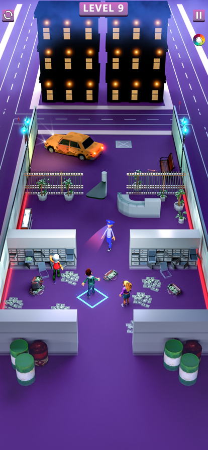 您有成为终极逃生大师的条件吗? 在这个惊人而有趣的益智游戏中找出您的特殊逃生技能。 在逃脱点之间绘制一条完美的路径。 成为逃生路线的主人,并向警察展示他们必须更努力地 训练才能捉住您。 注意传感器和探照灯! 您可以远离警察,但不能轻易击败技术! 下载并尝试一下您最佳的逃生计划!