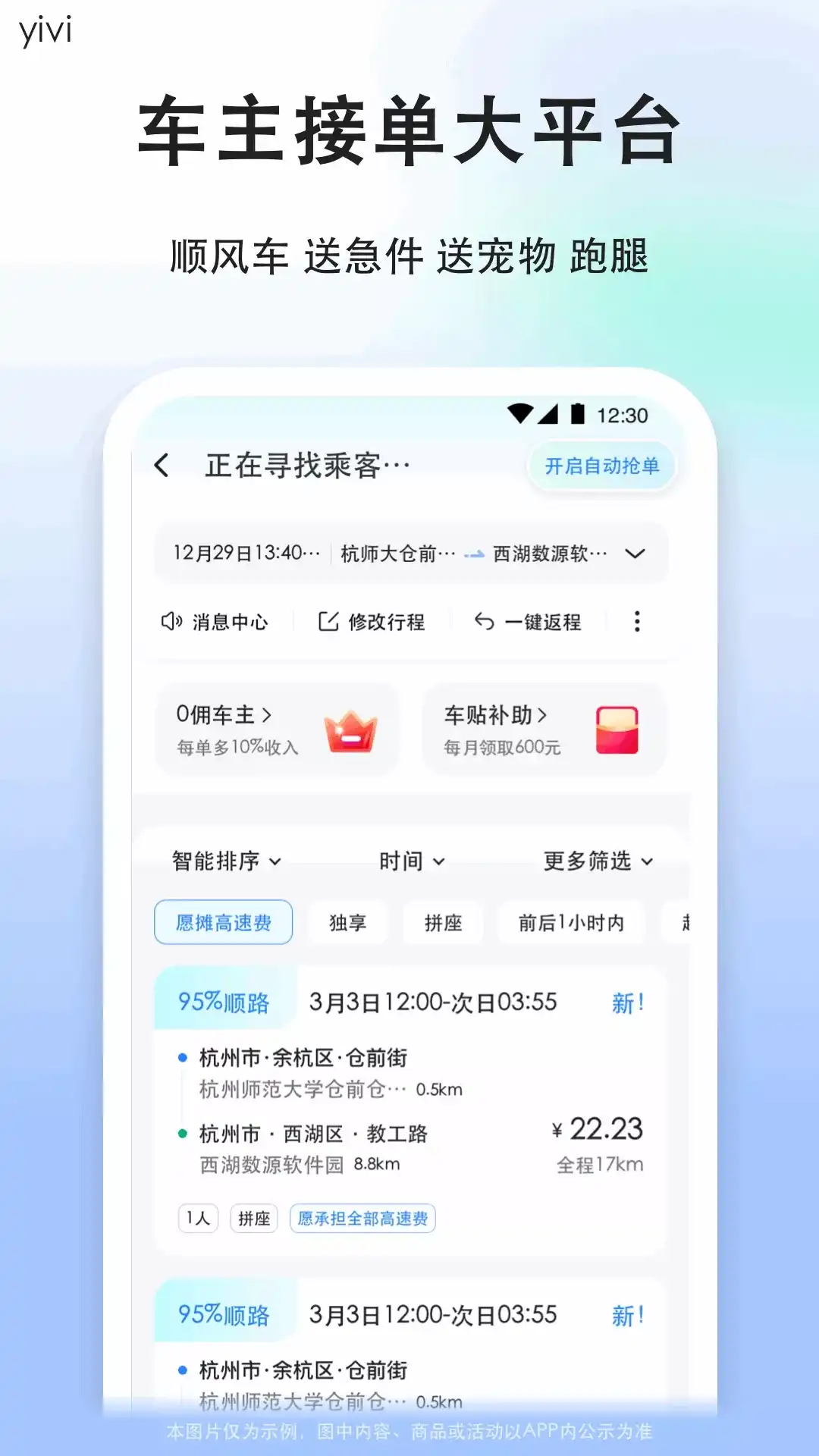 中国四大顺风车平台之一 2014年成立,1亿7千万用户 更安全、更好用 的顺风车 【顺风车司机版】匹配路线,监控路线,让您抢单更容易 【拼车司机】超多用户,海量订单,让您拼车出行更可行 【顺风车车主】“一键报警”,“亲友护航”,让您出行更安心 【顺风车司机端】上下班拼车,轻松接单,赚取油费又节能环保 【出行司机端】不偏袒乘客,不为难车主,公平,公正 【顺风车】顺风车全新升级,更加贴近您的操作,更加贴近实际生活 【顺风车司机】无缝切换第3方导航高德、百度、腾讯、苹果 【网约车】客服电话,没套路,没机器人,没按键选择,一键拨打,全人工服务 一喂顺风车希望,能过全体一喂人的努力,减少空驶率,提高利用率,让天更蓝,水更清! 让出行变得更加安全和便利,让天更蓝,水更清