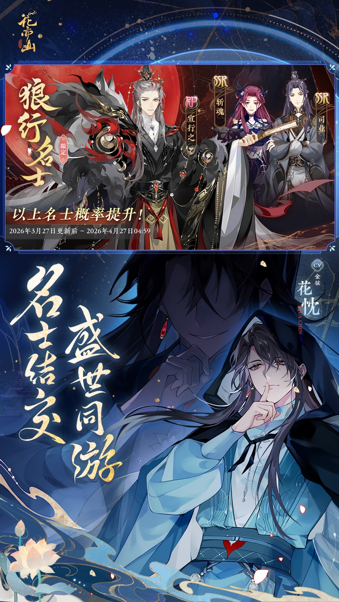 「与狼同行」全新活动剧情将于3月27日开启!既入红夜,何人生还!全新名士「RP宣行之」闪亮登场!更多惊喜期待你来开启<br><br>【名士结交,盛世同游】<br>是杀伐决断的首辅,也是思想深邃的先驱; 是万人敬仰的亲王,却满怀无人理解的孤寂;世人皆说大公主气盛专强,又有谁曾得见其情纯真……与各色名士缔结盟约,解锁TA不为人知的故事,感受其中的粼粼波光与惊涛骇浪。<br><br>【权谋爽剧,风云迭起】<br>从皇家书院的闲适雅致,到朝堂之上的波谲云诡,看似平静的大景早已暗潮涌动,你能否在世家纷争的漩涡中找到治世之道?头顶风云变幻,脚下步步惊心。这一路,有明枪暗箭,更有惺惺相惜。<br><br>【颜彩金描,国风巨制】<br>以中国传统色绘制东方的古典神韵,以描金工艺勾勒盛世的雅致华贵。飞檐斗拱的亭台楼宇、恢弘壮丽的宫殿建筑,一展宣景的盛世气度;其间的岸柳飞花、碧空流云,尽显国风的无限意境。<br><br>【豪华声优,视听盛宴】<br>游戏特邀吴磊、苏尚卿、杨梦露、陶典等顶级声优倾情献声,殿堂级国风音乐大师林海配乐,在耳端构筑纷纭世界,以听觉呈现人物悲欢,营造极致沉浸的声画体验。<br><br>【美妆华服,互动休闲】<br>点朱唇、贴花钿,自由捏脸国风美妆。理袖带、弄金钗,华服万千随心搭配。还可品茶会友,行飞花令,打理花圃,在紧张刺激的权谋斗争之余,悠享惬意的闲适时光。