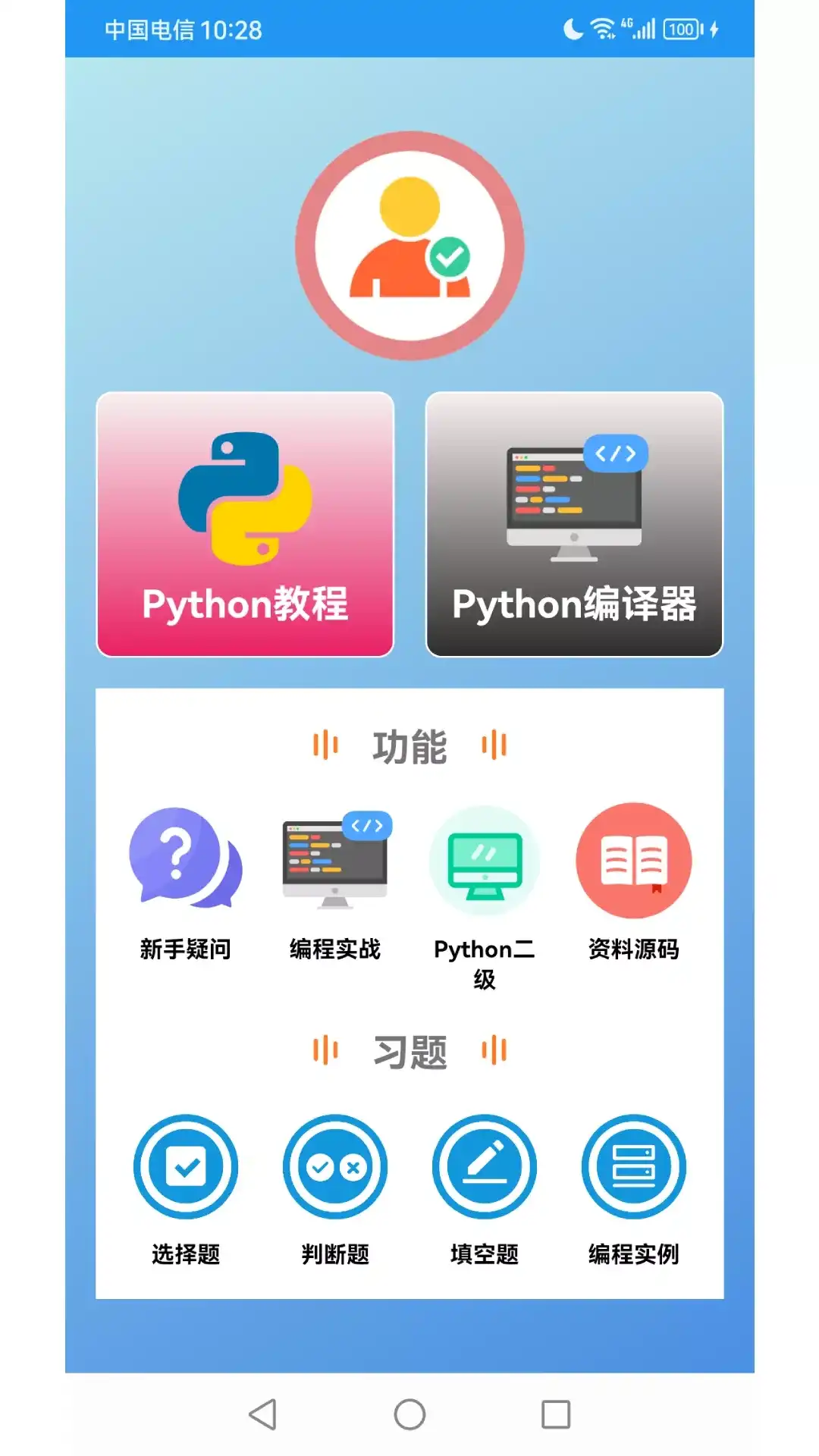 Python语言学习是一款Python语言学习软件,帮助编程爱好者了解和入门编程。软件包括了Python教程入门以及Python练习题等内容,无论是对专业的计算机科班同学还是非专业的编程爱好者,都能起到巨大的帮助作用。 【Python教程】从零开始学习Python语言语法知识,运算符、控制语句、函数、自定义类型等语法知识; 【Python题目】数千道Python练习题,涉及各个章节,帮助学习者更好更快的巩固所学Python知识; 【Python编程实例】理论语法等知识点结合编程实例代码,更好的提升对Python的理解和运用;