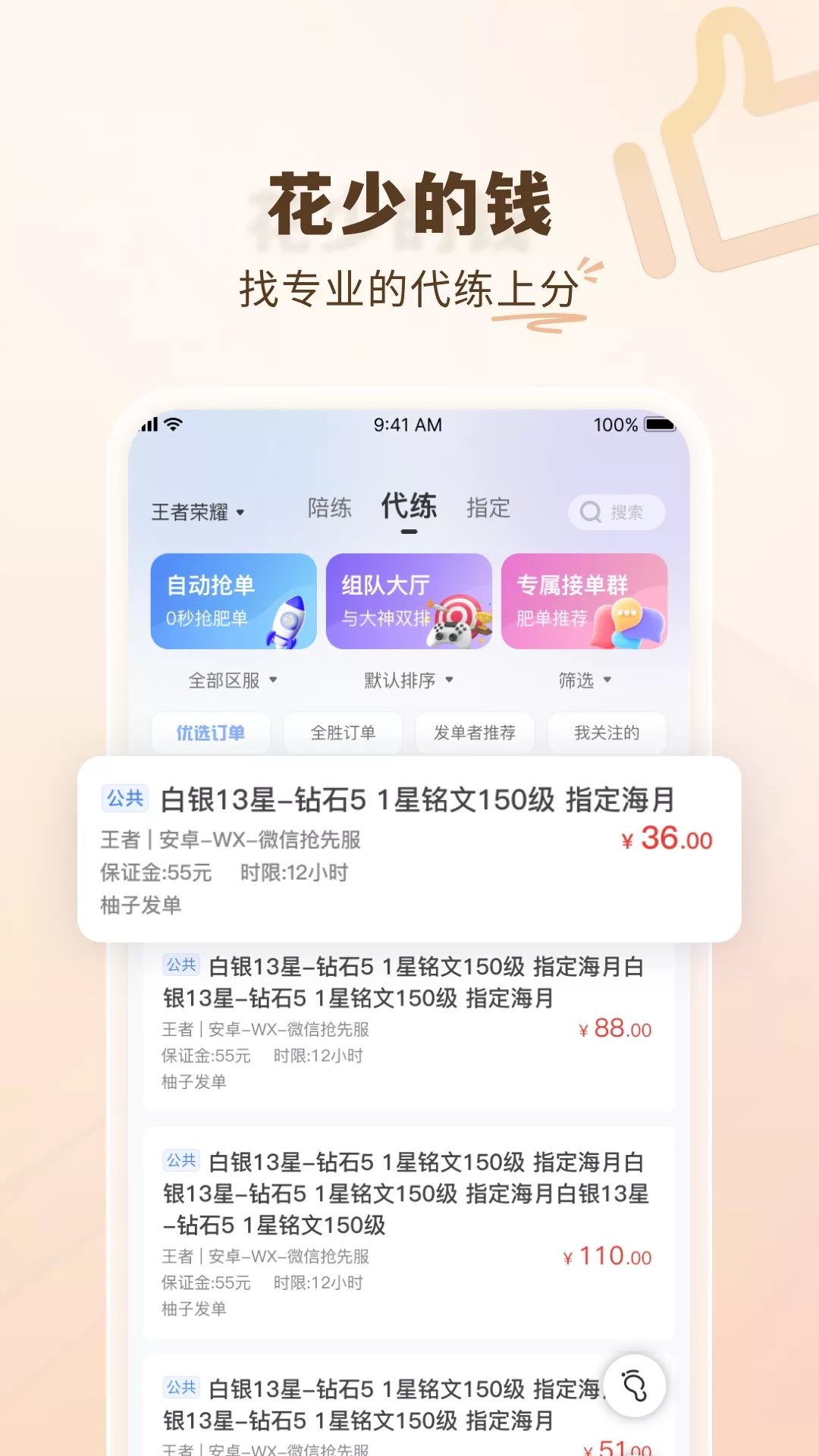 即刻下载代练通,马上开启你的找代练/做代练之旅。 即刻注册代练通,了解各类热门游戏如,王者荣耀,lol英雄联盟,lol英雄联盟手游,魔兽世界,和平精英,原神,等代练价格表。 查询各类热门游戏如,王者荣耀,lol英雄联盟,lol英雄联盟手游,魔兽世界,和平精英,原神,等需求代练的订单。 在代练通,你可以直接发布订单找到大神本尊帮你完成,直面代练大神,每笔订单物有所值,拒绝重重压价,避免额外花费。 在代练通,你可以在海量的代练订单中,寻找到自己中意的高价代练订单,接取有把握的代练任务,提供安全可靠的交易环境,让你每一分努力都有所回报。 代练通官网:www.dailiantong.com 【服务内容】 【一键代练】发布订单,代练接单,完成订单,一键代练操作简单。 【轻松接单】肥单订单,提高收入,无中间商,让你的时间更值钱。 【服务迅速】代练在线,随时待命,立马接手,代练急速接单。 【平台安心】老牌平台,为您订单保驾护航,安全放心。