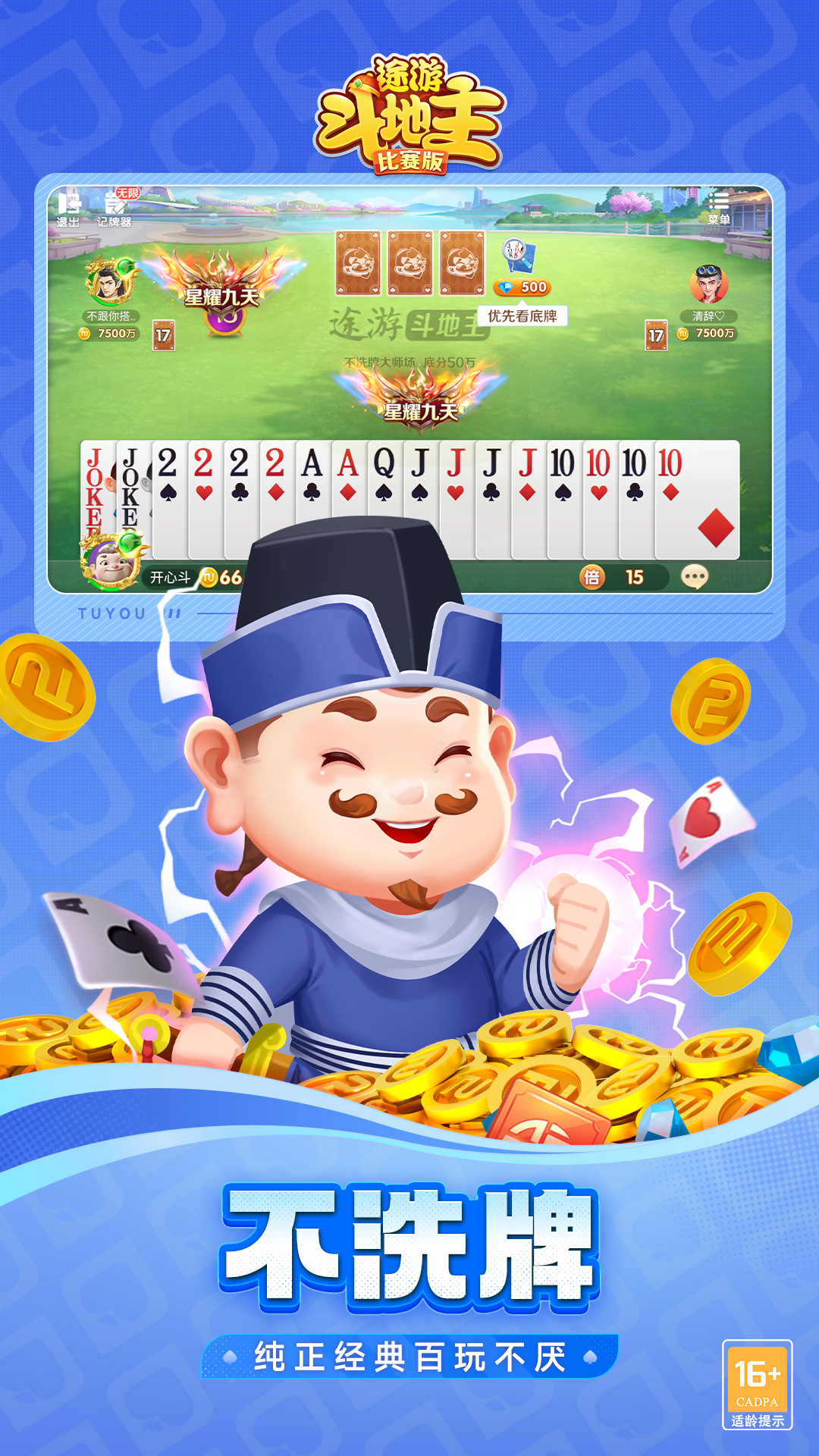 视觉体验升级,创新玩法暗牌斗地主,对比PK刺激升级!最新3D角色带给你与众不同的体验! 在这里,全国各地真人牌友实时对战,发牌公平,牌局专业,斗得过瘾,赢得畅快。 【主播力荐】 连炸、炸瞪眼、飚得快、百花七星等网红爆款直播霸屏,爽快解压! 【创新玩法】 跑得快升级飚得快,创新的赛事模式带来更多的竞技性、刺激感和趣味性! 【主播对战】 狙击主播、水友赛等主播互动玩法应有尽有,快来跟主播一决高下吧! 【玩法多样】 经典斗地主、不洗牌、超掼蛋、麻将、残局等多种玩法精彩纷呈,百玩不厌! 【公平竞技】 途游斗地主绿色无广告,玩家素质高,真人秒匹配,文明打牌,越斗越开心!