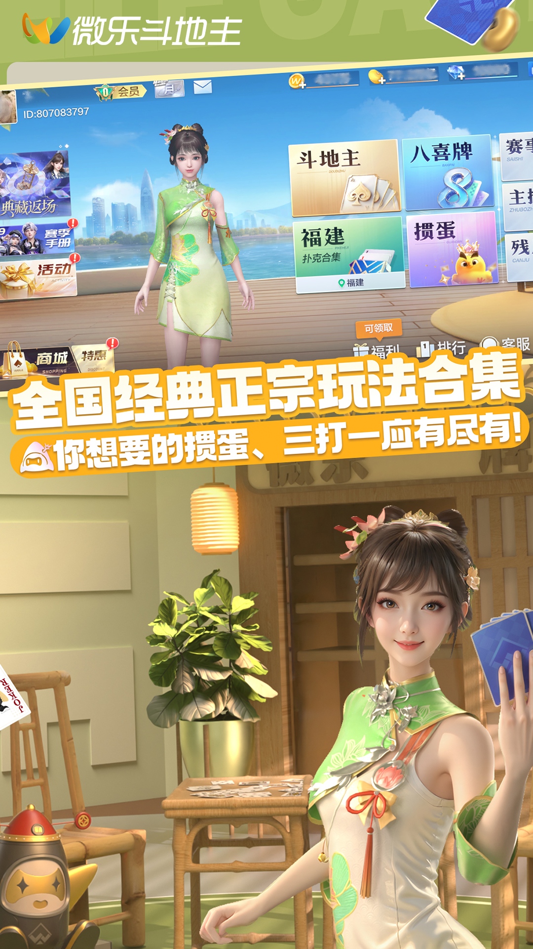 全国牌友邀你实时对战,赢豪礼!速爽解压,放肆嗨玩!全新桃源小仙及保卫家园上线!既能在斗地主里修仙,躺平暴赚亿万豆!又能体验合成炮塔、升级打怪的速爽快感!欢喜庄园,种啥都赚,轻松暴富!解锁典藏牌桌,酷炫场景,震撼动态! 多种玩法,风靡全网,等你来斗! ——主播爆款,创新玩法任选!—— 【克隆炸炸炸】网红人气爆款!连胡带炸爽不停! 【连炸斗地主】满屏炸弹,轻松破亿,爽快解压! 【王牌510K】超高 倍率,一把千亿,双地主加倍暴击! 【超级掼蛋】起手好牌,一键理顺,开局翻倍连炸! ——百玩不厌!纯正经典斗地主!—— 【不洗牌】规则简单0门槛,练牌技,练手感! 【2v2】好友组队,合作双赢!拼实力,拼默契! 【巅峰赛】真人竞技,牌局博弈,高手对决秀实力! ——高品质特效,沉浸式玩牌!—— 轻国风画风,高品质场景。动态牌桌,珍宝龙宫,尊享体验! 独特角色系统,养成玩牌技能。致敬神话经典,角色悟空、哪吒皮肤,叱咤牌局!更有阿杰、乔诗语、云鹤追等知名CV加盟,沉浸式玩牌!