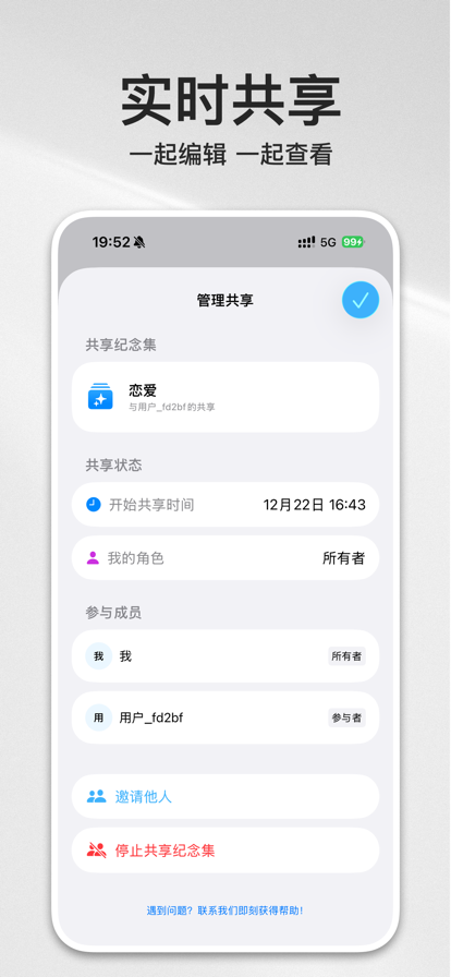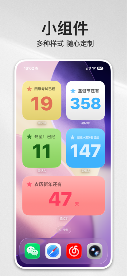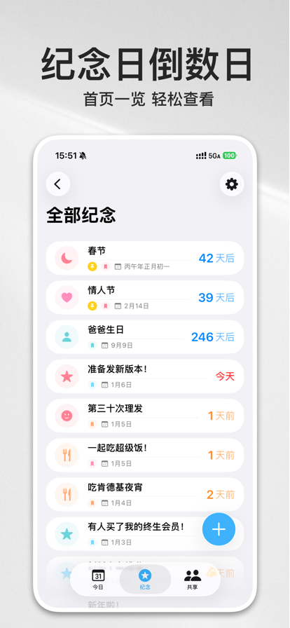 星纪念,帮你记录生活中所有值得被记住的日子。 无论是考试倒数、恋爱纪念日,还是某次吵架的一周年,大事小事,都值得被纪念。 应用数据自动同步到iCloud,多设备多用户轻松访问。 【记录纪念与倒数日】 你可以在星纪念中记录任何你在意的纪念或倒数日: - 已经发生的重要时刻 - 即将到来的目标与期待 - 为每个纪念设置日期、备注与描述 【用「纪念集」分门别类】 纪念可以通过纪念集进行分类管理: - 为不同主题创建纪念集 - 自定义纪念集名称、描述与颜色 - 同一纪念集内的纪念将以统一颜色标记 - 未分类的纪念会自动加入「未分类」纪念集 【实时共享纪念集】 你可以将纪念集共享给他人,与重要的人一起记录与管理: - 实时查看、编辑与删除纪念 - 通过邀请链接或邀请口令快速加入 - 支持随时管理或退出共享 【小组件】 你可以在主屏幕添加星纪念的小组件,随时轻松查看倒数日 - 选定要查看的倒数日,或者选择智能推荐 - 选择喜欢的样式 【自动提醒重要时刻】 星纪念会在重要节点为你提醒: - 纪念日当天 - 30 天、100 天、一周年等关键时刻 - 在设置中选择是否开启提醒及提醒时间 使用条款:https://www.apple.com/legal/internet-services/itunes/dev/stdeula/ 隐私政策:https://starmemories.notion.site/2d13a376812180ab90c5c1465ddcfdfa
