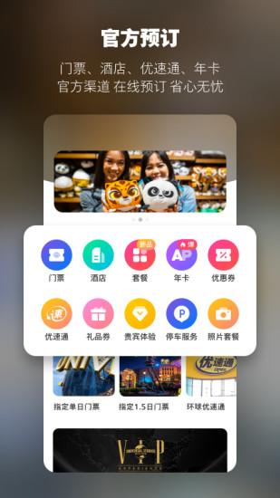 下载北京环球度假区官方App,一键玩转7大主题景区:哈利·波特的魔法世界™、变形金刚基地、功夫熊猫盖世之地、好莱坞、未来水世界、小黄人乐园、侏罗纪世界努布拉岛。 打卡游乐项目、观看精彩演出、提前规划游园……更多精彩,等你一起发现! 【功能介绍】 北京环球度假区官方App提供门票购买、酒店预订、地图导览、园区信息在线查询、游乐设施等候时间及演出时间查询、游玩攻略推荐等功能,为你提供多元化在线服务,提升您的游玩体验! = 门票购买 = 可抢购不同日期的北京环球影城指定日门票 =官方度假酒店预订 = 可预订北京环球度假区2家酒店,享沉浸式中西度假体验,更有机会享提前入园礼遇 = 地图导览= 可定位玩乐、演出、餐厅、商店、酒店等,让您游园更轻松 = 信息查询 = 1、园区信息:查看开放时间、主题故事、游客服务等园区信息 2、游乐设施等候时间:让你更合理规划园内行程,游玩更高效 3、演出、活动时间:查看演出、活动时间,灵活安排游玩规划 4、美食餐厅查询:饕餮美食等您来发现 5、周边商店查询:查看周边商店位置,前往挑选喜爱的周边商品 6、入园预约:安全防疫,健康出行,快速入园 7、游玩推荐:查看玩乐、演出、餐厅、表演和酒店等推荐 8、其他服务:翻译,查询洗手间、寄存柜、指定吸烟区、自动取款机等信息 还有更多精彩内容,期待您的使用与体验! 【联系我们】 感谢您使用北京环球度假区APP,可直接在【我的】-【帮助&反馈】获取更多信息或反馈意见。您也可以通过一下方式需获取更多信息: 官方微博:北京环球度假区 微信公众号:北京环球度假区