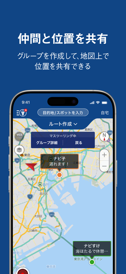 「ツーリングをもっと楽しむために」 本アプリは『走りを楽しむ』事を徹底的に追求したバイク専用ナビゲーションアプリです。 最短ルートの検索はもちろん、景色の良い『ツーリングロード』など走って楽しい道のナビゲーションをすることも可能です。 ナビ中もバイクでの走行を考慮した『大きく』『シンプル』で視認性の良いUI、交差点名称の発話などきめ細やかな音声ガイダンス、二輪規制を考慮して排気量にあったルートを検索できるなど、バイクでの走行に最適なナビゲーションで安全・快適な走りをサポートします。 さらにツーリングは走って終わりではありません。ツーリングやカスタムの記録を残せる『バイオグラフィー』機能では、バイクとの思い出を振り返ることができます。 計画から思い出管理まで、ツーリングを楽しむための機能が充実しています。 == ツーリングサポーターならではの機能 == ●ルート検索 ・「推奨」「高速道優先」「一般道優先」「景観優先」「推奨2」の最大5経路を提案します。 ※各条件に最適なルートがない場合もございます。 ・VICS*の渋滞/規制などの交通情報を考慮したルートを検索できます。 ・コースにより最大100件*の地点を設定したルートを検索できます。 ・夏に高温になるトンネルを回避したルートを検索できます。 ※全てのトンネルに対応しているわけではありません。 ・バイクの排気量を考慮したルートを検索できます。 ※原付、原付二種、小型二輪、中型二輪、大型二輪の全てのバイクに完全対応。 ●ツーリングロード ・全国370ルートを越える、おすすめの景色の良いルートを調べることができます。 ・おすすめのツーリングロードを含めたルート検索/案内ができます。 ●マイレージ ・走行ログを取得すると移動した距離に応じたポイントを付与。 ・貯めたポイントで景品が当たる抽選に参加できます。 ●ルート保存* ・作成したルートを保存していつでもナビすることができます。 ・コースにより最大50件*のルートを保存できます。 ●愛車設定* ・複数車種を愛車として設定することができます。(コースにより最大5台*) ・設定した愛車の情報を元にルート検索の排気量/ETCを簡単に設定することができます。 ●CarPlay* ・スマートモニターと接続して地点検索やナビゲーションができます。 ●バイオグラフィー* ・バイクとの思い出をタイムライン形式で振り返ることができます。 ・ツーリングで走行したログを保存/参照可能です。 ・バイクをカスタムした思い出を写真付で投稿できる「カスタマイズ」、バイクの維持も思い出として投稿する「メンテナンス」で整備記録も残せます。 ※無料会員の場合はバイオグラフィーの利用が90日間ない場合は削除されます。 ●マスツーリング* ・グループを作成し、ツーリング仲間と現在地とコメントを共有することができます。 ●オフライン地図/ナビ* ・圏外でも地図、スポット検索、ルート検索、音声案内が利用できます。 ・電波がある時も通信量節約モードとしても利用できます。 ※オフラインデータは大容量のためWifi接続でのダウンロードを推奨しております。 ※オフラインデータのご利用には端末に2.5GB以上の空き容量が必要です。 ▲注意 ※WIFI専用モデルについてはお客様の通信環境によって動作が安定しない可能性があるため本サービスでは動作保証しておりません。 ※本アプリは運転中のナビ画面注視/操作を想定しておりません。 ※画面の注視/操作を行う場合は、安全な場所に停車してからご利用ください。 ※ナビで案内された道路標識などの交通規制情報が実際の道路状況と異なる場合は、すべて現地の通行規制や標識の指示に従って走行してください。 ※VICSの規制情報は普通自動車に対応したデータとなります。 == 主要機能一覧 == ○交通情報 ・渋滞線表示* ・道路交通情報* ○地点検索・登録 ・全国100万スポットからフリーワードで検索 ・「バイク駐車場 / ガソリンスタンド / コンビニ / 道の駅」の周辺検索 ・自宅の登録 ・My地点登録* ○地図 ・ゼンリン地図 ・航空/衛星写真 ・降雨/降雪マップ ・3D自車位置アイコン ・地図情報の自動更新 ・バイク駐車場 / ガソリンスタンド / コンビニ / 道の駅/桜や紅葉の名所のスポットアイコン表示 ・ガソリン価格表示 ○ルート検索 ・二輪規制を考慮したルート ・横付け設定 ・最大5本のルート検索* ・オフライン検索* ・ツーリングロード ○ナビゲーション* ・音声ナビゲーション ・制限速度表示 ・危険地点、オービスの注意喚起 ・オフラインナビ* ・交差点や分岐点における、レーンガイドや交通看板、進行レーンの3D表示 ○車載器/スマートモニター連携 ・CarPlay接続 ・mySPIN接続 ○バイオグラフィ ・走行ログ保存* ・カスタマイズ記録 ・メンテナンス記録 ○その他 ・車両登録(最大5台)* ・ナビタイムマイレージ *マークは有料機能(一部機能は無料で利用可)です ■利用規約 画面左上のメニュー>ヘルプ/サポート>利用規約をご参照下さい