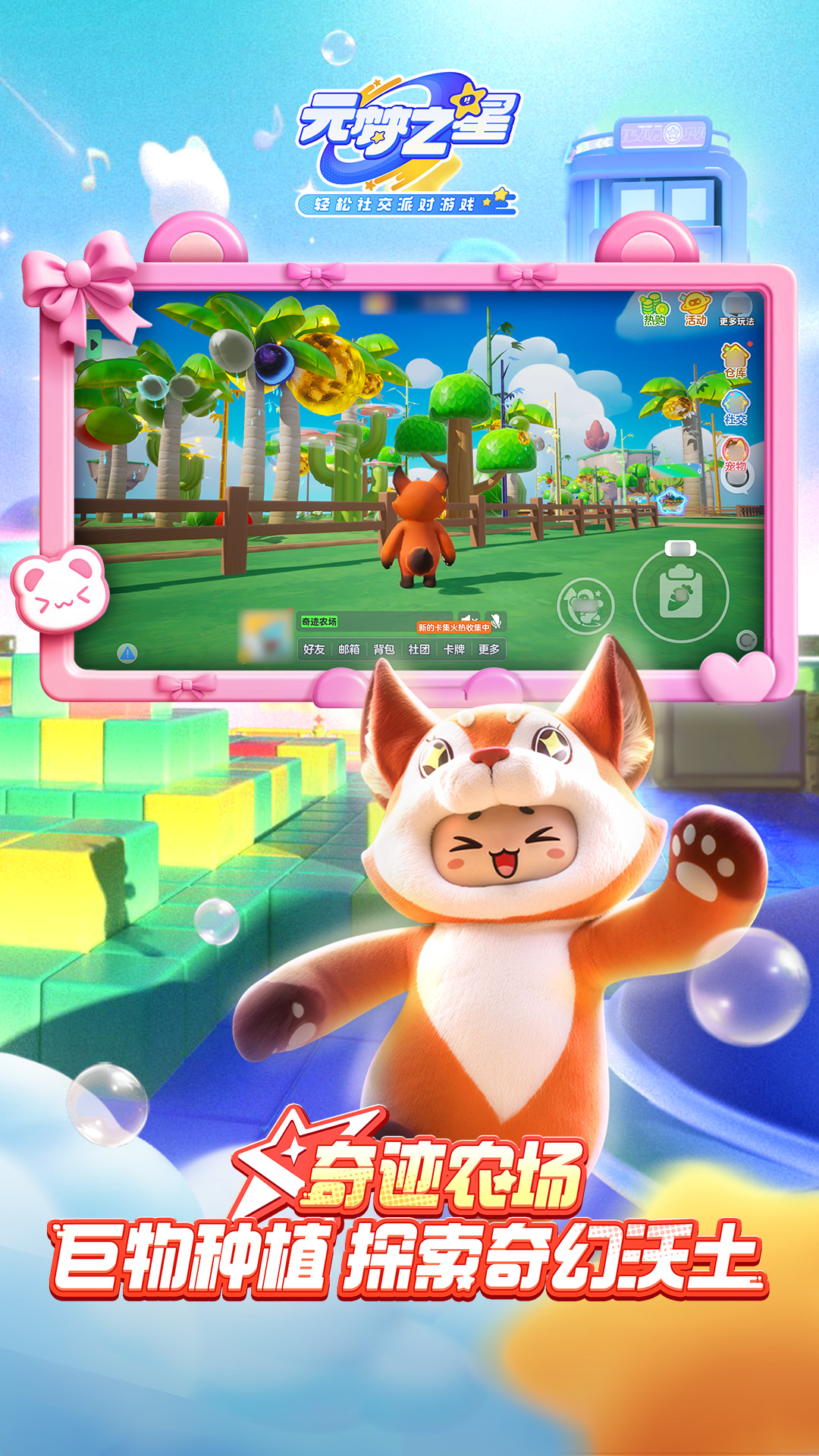 《元梦之星》是一款轻松社交派对游戏,玩家们可以化身星宝,体验纯粹的游玩乐趣,收获简单的快乐。无论i人e人,都能轻松找到属于自己的社交方式。 <br> <br>《元梦之星》的快乐,可以是闯关夺冠时的激动、谁是狼人推理的巧妙、峡谷3V3打赢团战的爽快;也可以是在星梦广场上开火车的闹腾、农场生活的悠闲、钓到大鱼的惊喜、星世界与星家园带来的感动……还有全世界的星朋友,陪你一起胡闹!在《元梦之星》,快乐“元”来很简单!