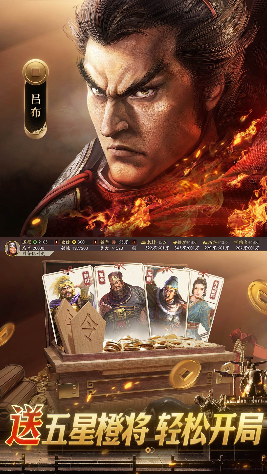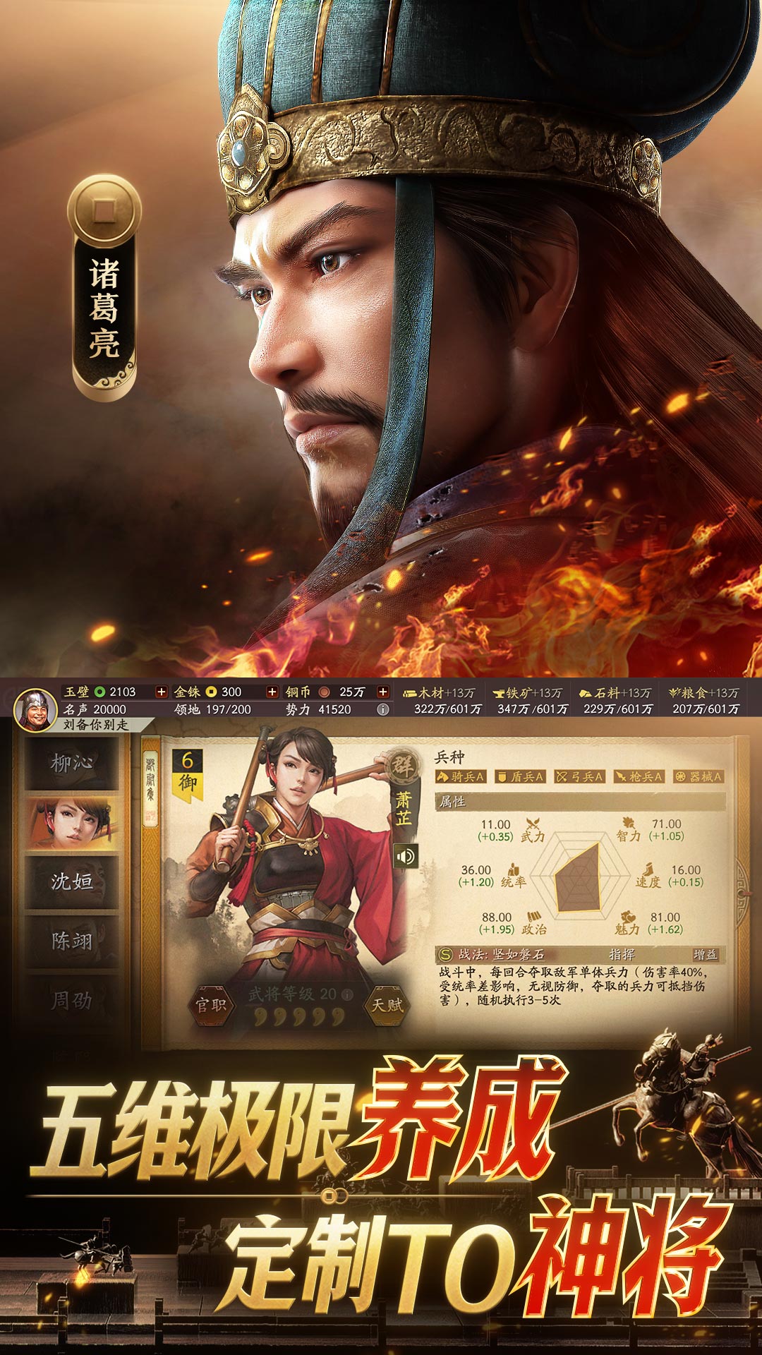 1亿战略家的真实战场 历史模拟战争策略大作 下载就送开荒利器 五星橙将庞德 《三国志·战略版》是由灵犀互娱匠心打造的高度拟真的历史战争模拟沙盘游戏,带您沉浸体验真实恢弘的三国古战场。 在这世界中,您将亲历三国风云,开疆拓土,招贤纳士,并与万千盟友并肩作战,逐鹿中原,目标直指洛阳王座。 您可效法曹操,以领袖魅力聚天下英豪,壮大势力,挥师征讨四方;亦可如诸葛亮运筹帷幄,以智谋与外交决胜千里;或似张飞勇猛无双,冲锋陷阵克敌制胜;亦能仿效水镜先生,于乱世中觅得一方净土,钻研韬略,静观天下变局。 这里没有VIP特权,资源兵力概不出售。崛起之道,唯赖谋略与胆识!每一步发展、每一场战役,皆需智慧与战术的支撑。 诚邀主公穿越时空,重返1800年前汉末乱世,以无双智略问鼎中原,终结十三州烽火,成就一统华夏的伟业! 加入《三国志·战略版》,亲历传奇,书写属于您的三国史诗! 【游戏特色】 自定义橙卡 12选3爽送 自定义都尉神卡,无需纠结12选3爽送。自定义养成卡不再分身乏术。阵容不够硬?选择萧芷都尉,全面增强阵容坦度!缺增益?杨琪都尉、马蝉都尉随意选,全面提升阵容战斗能力。3张都尉卡等于补全3个t0阵容! 五维极限养成 定制T0神将 一切皆可定制,自定义都尉养成卡无上限。红度无需付费,直接传授获得!成长数值并非天生,历练增长强度!装备无需运气打造,限定特效装备奖励领取!自定义都尉卡自带顶级战法,为你拼凑T0阵容的最后一块拼图! 全地图天气控制 风雨破敌 同盟秘籍“顺应天时”提供地图级天气控制。发动“寒潮”秘籍封冻一州江河,可冰面行军直捣黄龙。你也可以发动“风砂”秘籍,风沙消弭守城2层九宫图、八卦阵效果,趁着黄沙漫天掩护强攻先登! 送5星橙将 轻松开局 无须充值,开局就送五星橙将,持续签到还有海量金铢赠送。没有强制性的主线任务,在三国乱世如何崛起全凭自己做主。你可以广收蓄粮草,稳健发育起家;也可以快速抢占资源富庶之地,以战养战…… 不卖资源不撕卡 公平竞技 没有VIP系统,也不卖游戏资源。所有玩家在游戏中开局都只有一座小城,从大汉王朝摇摇欲坠的边陲开始经营。以战斗争夺土地归属,以谋略稳定乱世霸业。