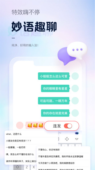 QQ输入法是一款高效、智能的手机输入软件。能够支持多种输入:拼音、英文、五笔、笔画、手写、语音、数字、符号,配合整句输入、智能纠错、云候选等扩展功能,更加便捷的满足了不同用户的需求。QQ输入法通过多项技术,为用户带来更快、更稳定、更流畅的输入体验。 *******特色功能******* 【语音变声】一键变声,多种声线,让好友震惊一下 【语音包】魔性伪音,丰富搞怪素材,皮着聊很开心 【神配图】斗图新利器,输入的每个字都有表情包 【智能语音】中英混输,支持修改,说话实时转文字 【闪电萌语】怼人聊天,定制专属,一秒上屏神助攻 【写真皮肤】海量皮肤,破键而出,让你的皮肤全场嗨 【DIY皮肤】千种搭配,一键发布,壁纸、多彩、写真都能制作呦 【快捷翻译】中英、中日、中韩实时互译,跨国聊天无压力 【斗图表情】热门表情,动态GIF,海量斗图一键搜 【云剪切板】复制内容自动收录,登录同步更便捷